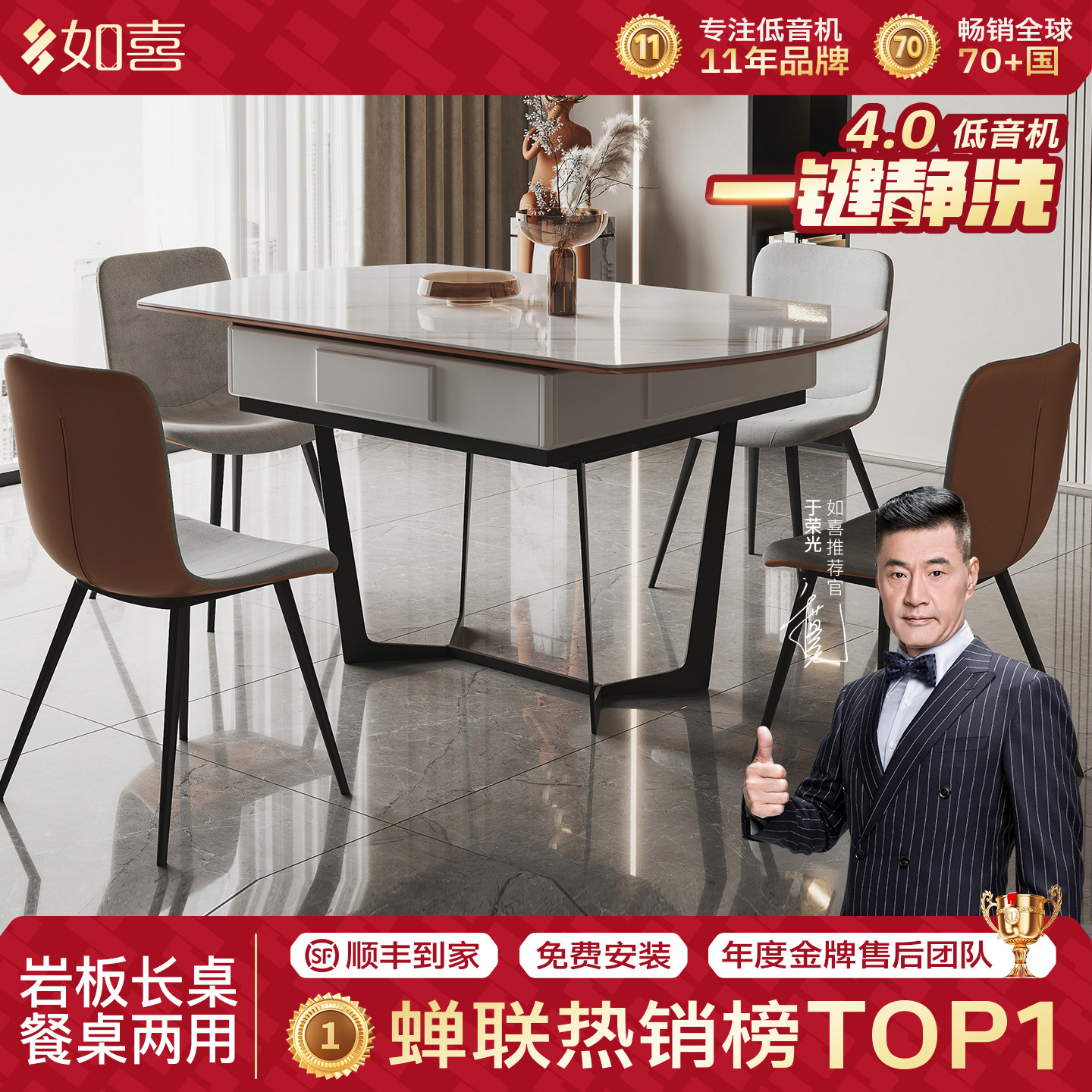 如喜极简实木麻将桌餐桌两用轻奢家用电动全自动麻将机岩板长桌