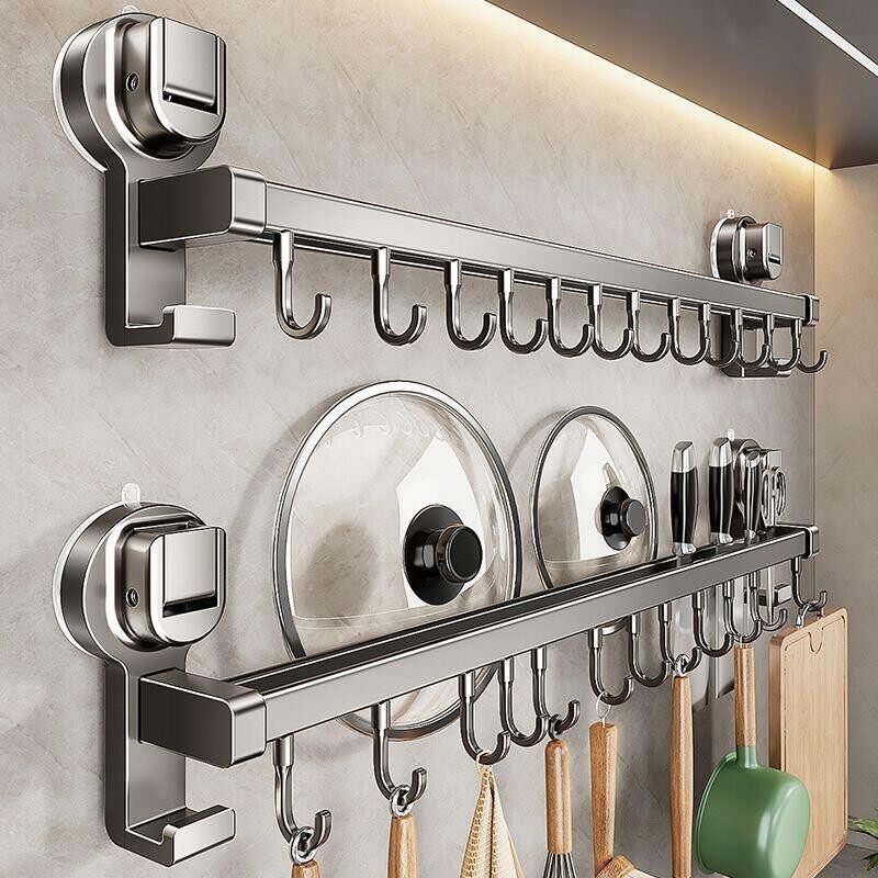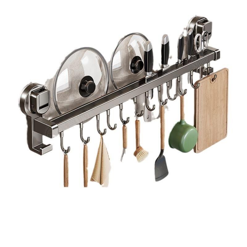 适用吸盘厨房挂钩免打孔置物架挂杆锅铲勺子刀具一体挂架新款