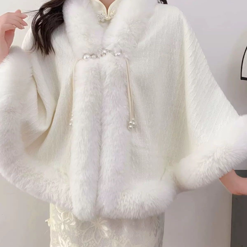 新中式旗袍披肩潮流百搭优雅披风秋冬季加厚民国风仿皮草毛绒斗篷