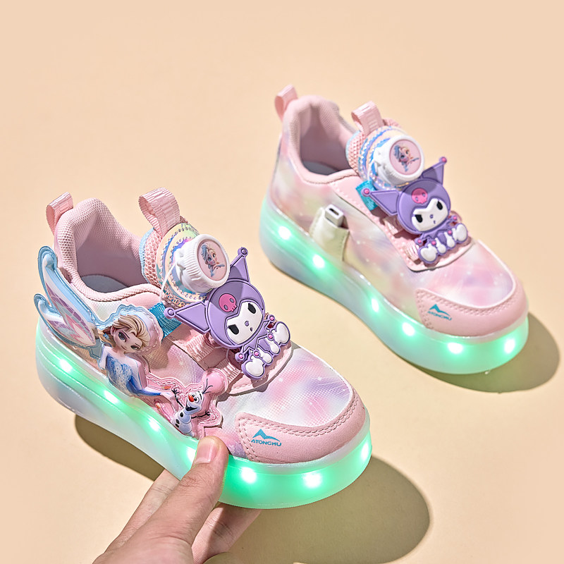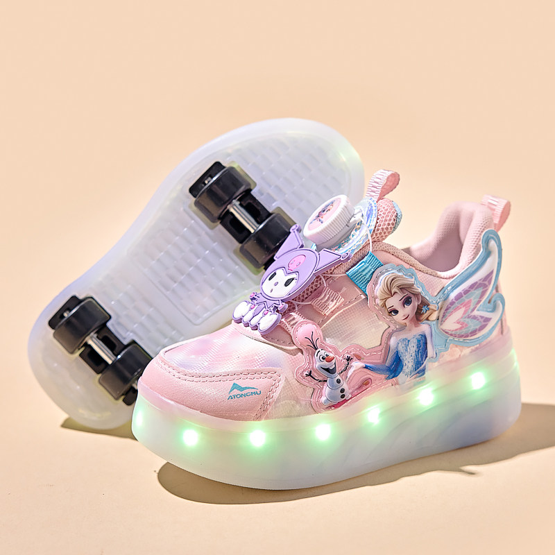 库洛米女童暴走鞋2025新款四轮发光溜冰鞋可拆隐形女孩轮滑鞋学生