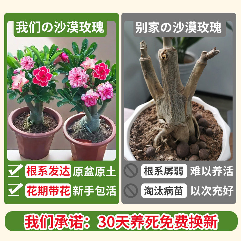 沙漠玫瑰盆栽重瓣带花苞小苗老桩盆景室内阳台花卉绿植物多肉花卉