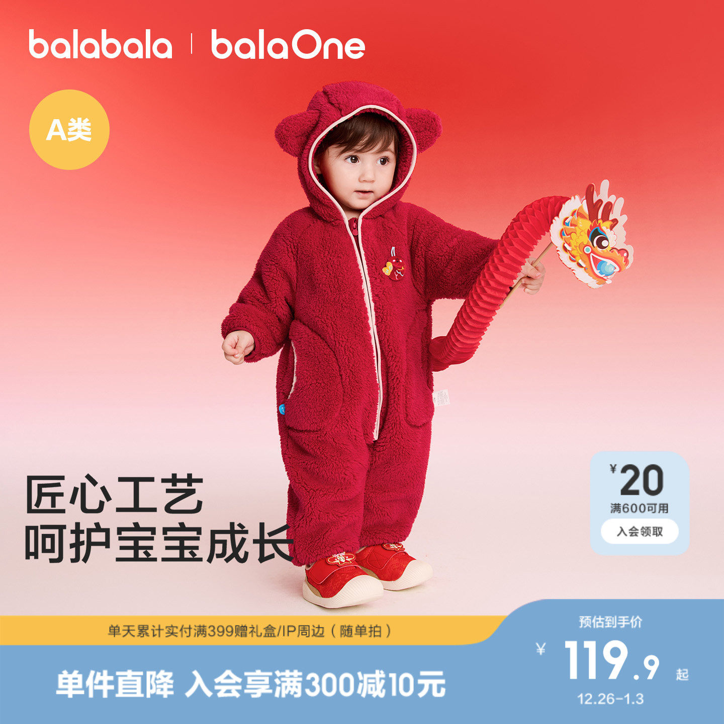 巴拉巴拉新生婴儿连体衣2026新款秋冬装宝宝爬服抱衣新年服喜庆萌