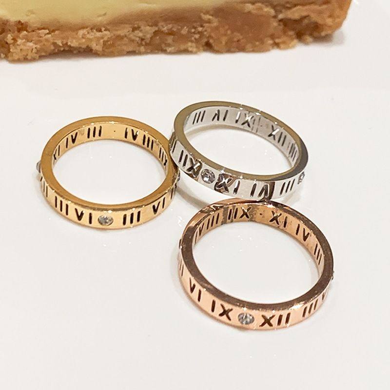 罗马数字钛钢戒指女百搭小众设计高级感素圈情侣对戒尾戒食指环