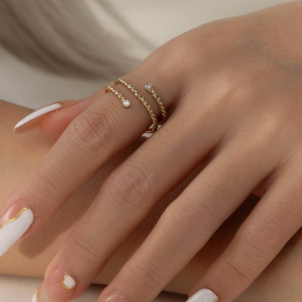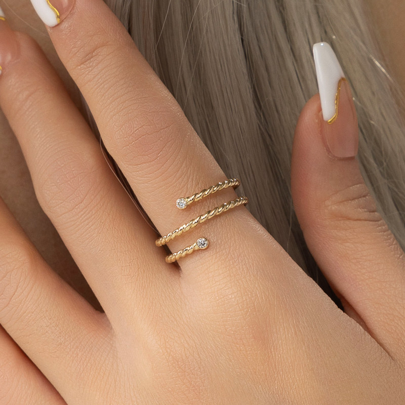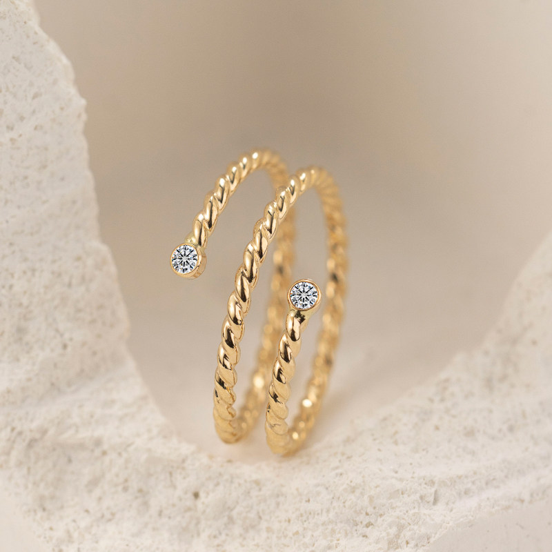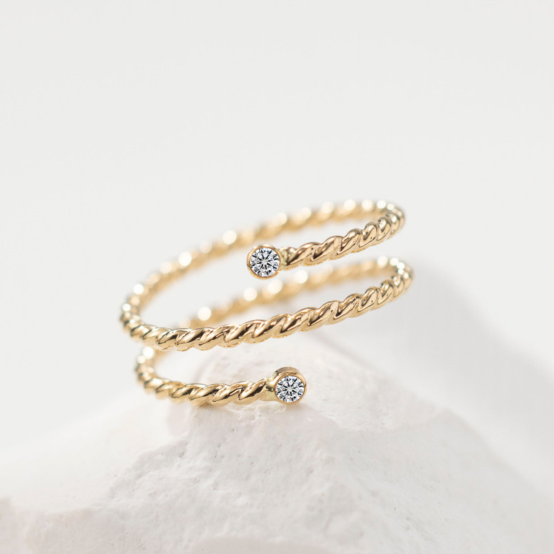 多层缠绕戒指 14K包金麻花莫桑石戒指 轻奢食指戒指女高级感