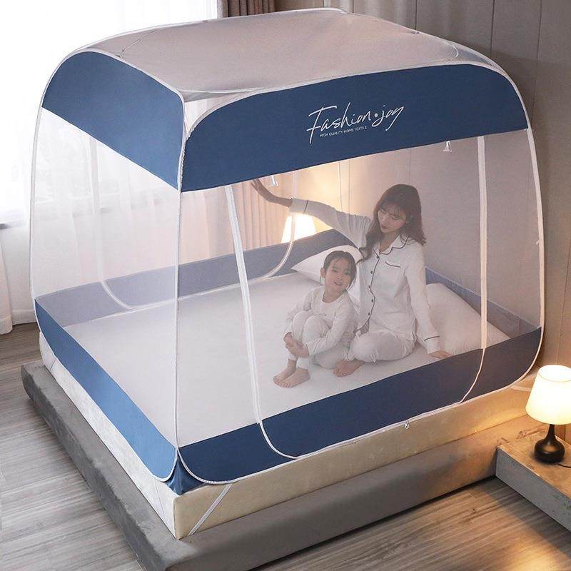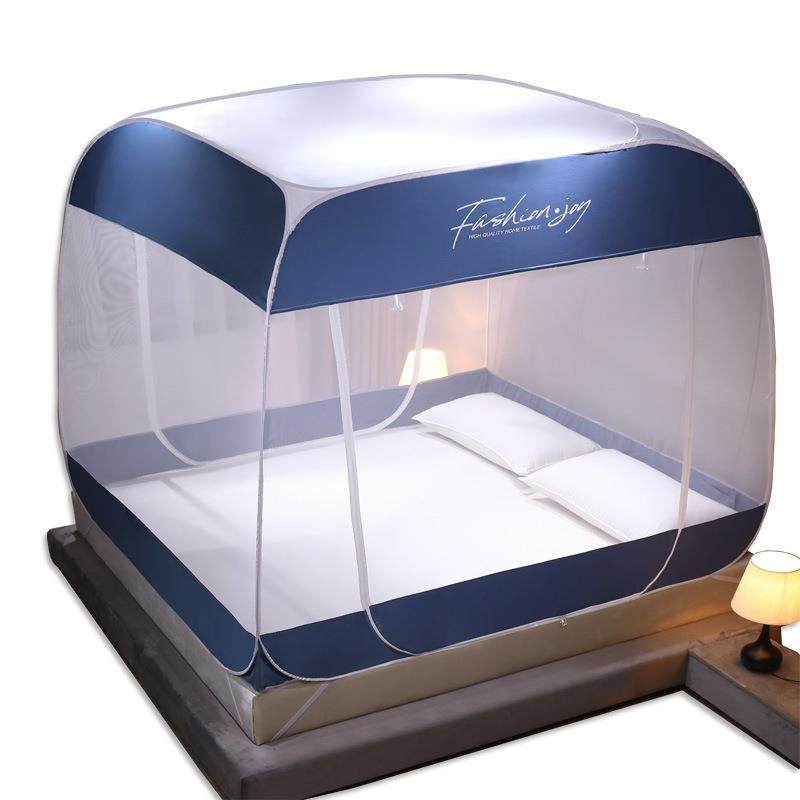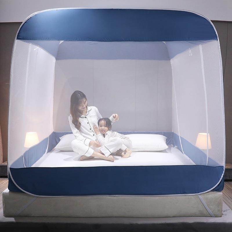 三开门蒙古包蚊帐家用折叠免安装纹帐2022夏季方顶学生宿舍床幔