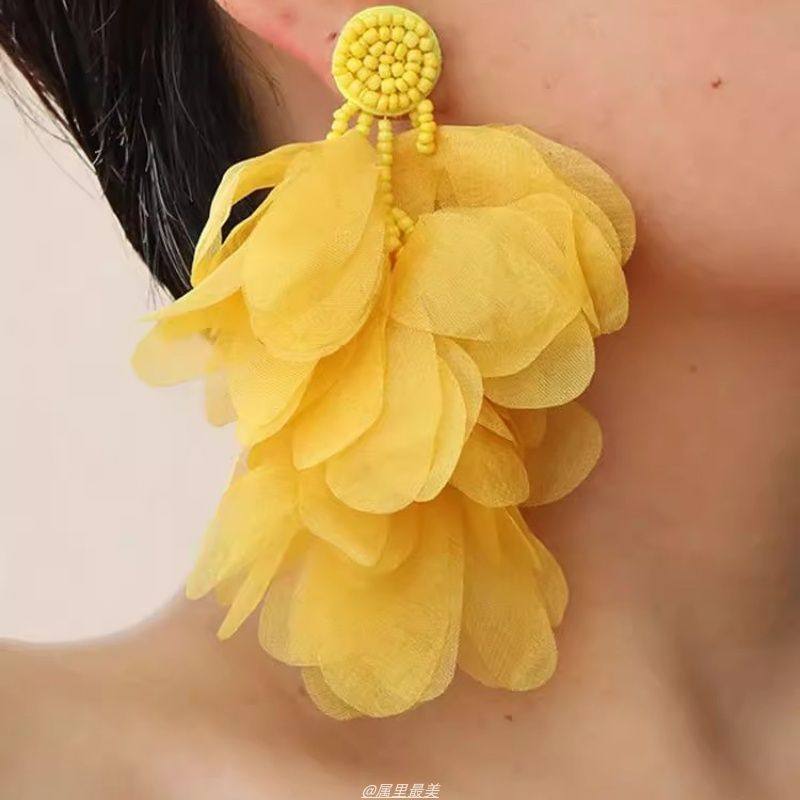 海边度假风黄色花瓣流苏耳环波西米亚风耳钉小众个性夸张耳饰新品