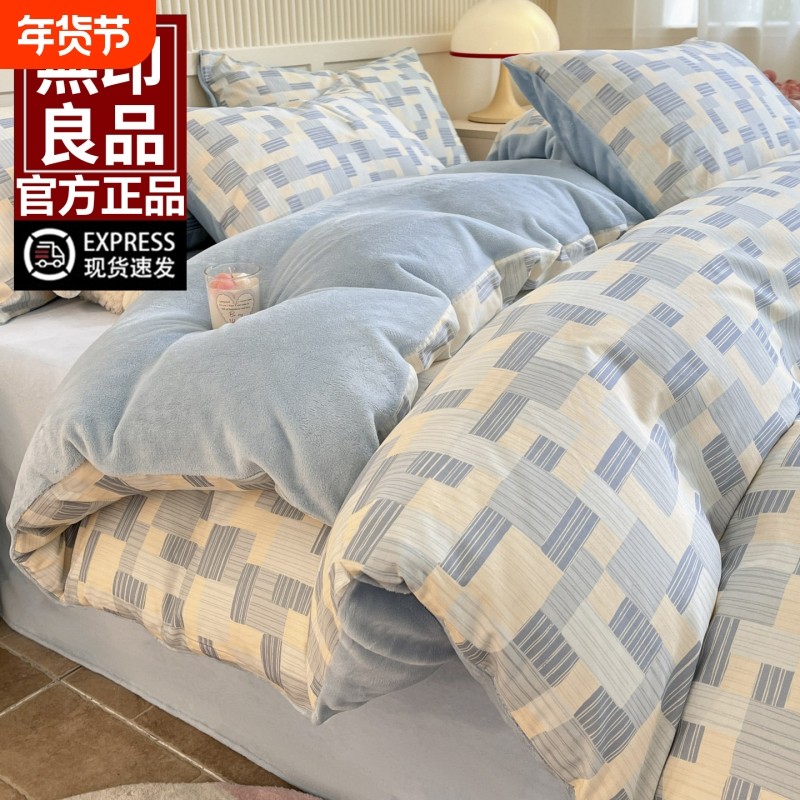 无印良品牛奶绒被套单件全棉纯棉冬季加绒珊瑚绒被罩单人150x200