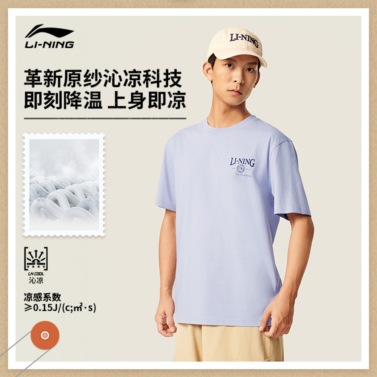 李宁短袖T恤男士官方新款凉感上衣圆领夏季休闲半袖女针织运动服