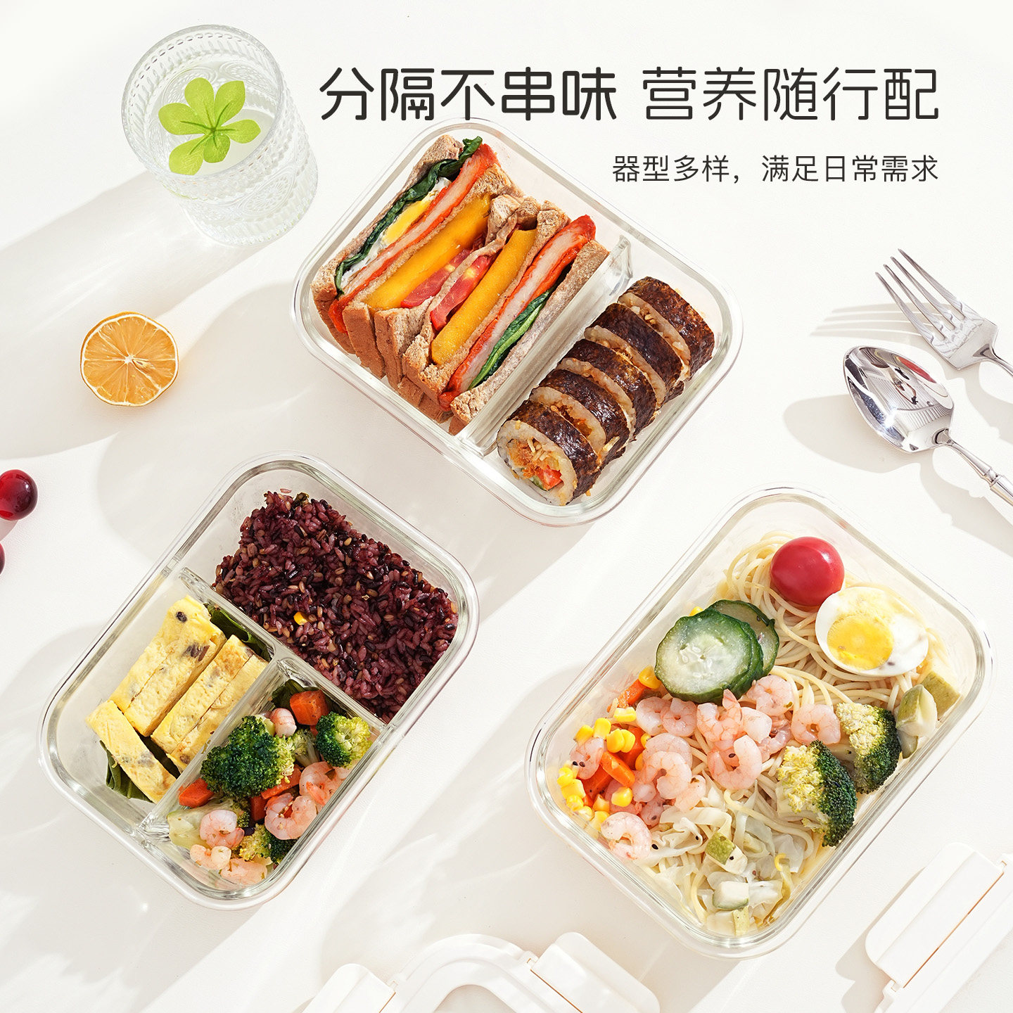 饭盒微波炉加热专用碗上班族带饭餐盒带盖玻璃保鲜盒分隔型便当盒