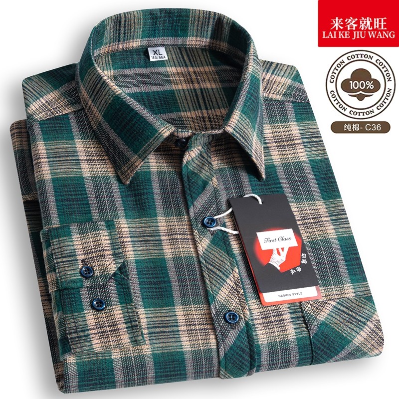 【清仓特价】纯棉男士长袖衬衫全棉宽松格子衬衣商务休闲爸爸装