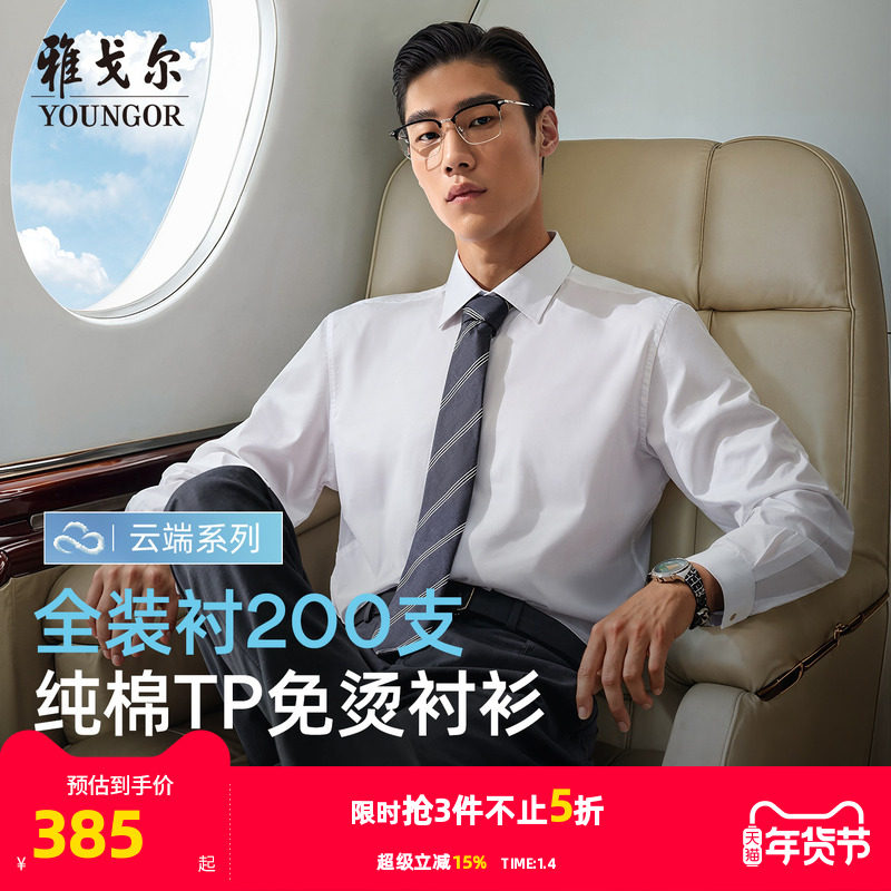【200支缎纹免烫】雅戈尔春秋新品商务休闲通勤TNDP长袖衬衫男