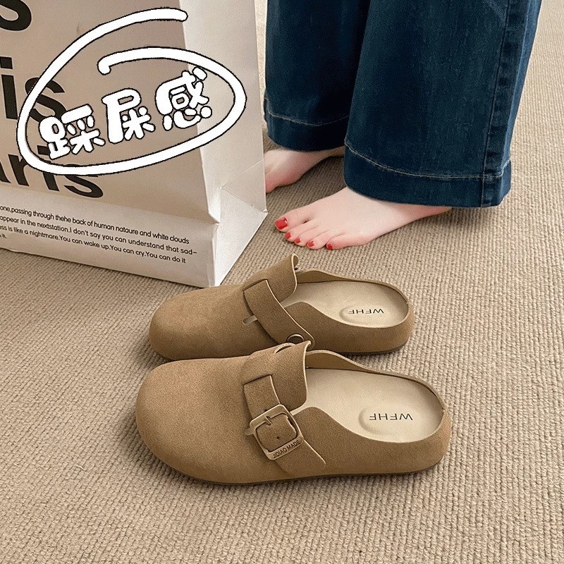 真皮包头拖秋季2025年新款勃肯鞋圆头拖鞋平底外穿休闲半拖懒人鞋