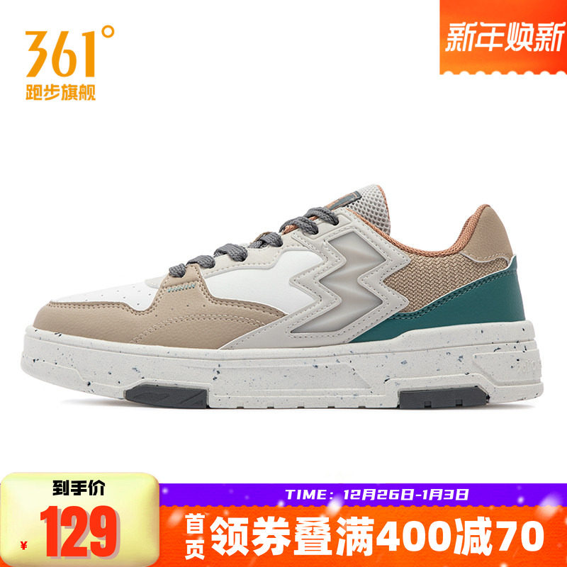 361度男鞋冬季革面运动鞋361度男款低帮板鞋复古潮流百搭小白鞋