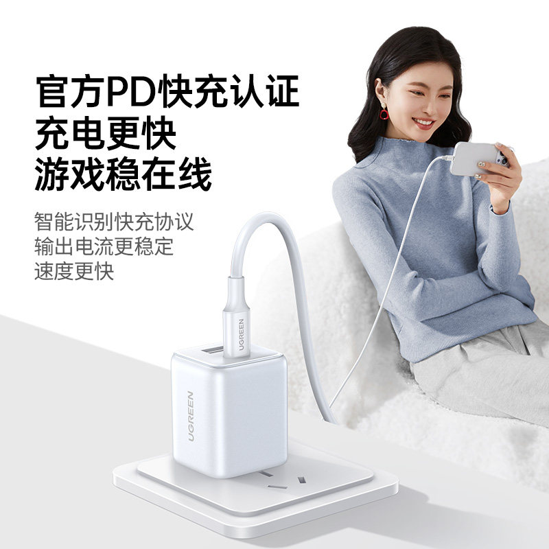 绿联30W多口充电器线适用苹果华为小米iPhone17pro双口充电头安卓手机氮化镓快充16通用typec插头1a1c三口usb