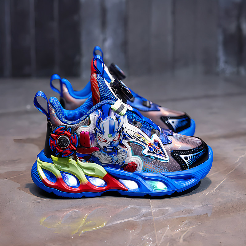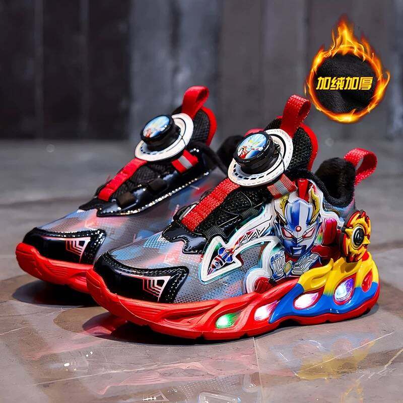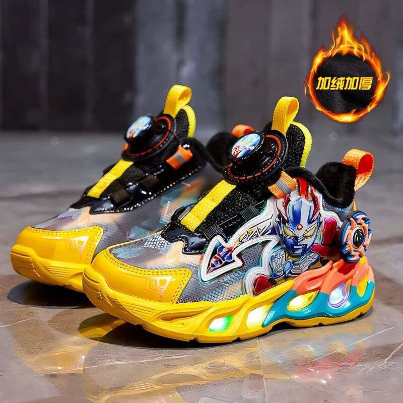 巴布豆真皮赛罗男童曼鞋冬季新款儿童加绒保暖旋转纽扣运动鞋鞋子