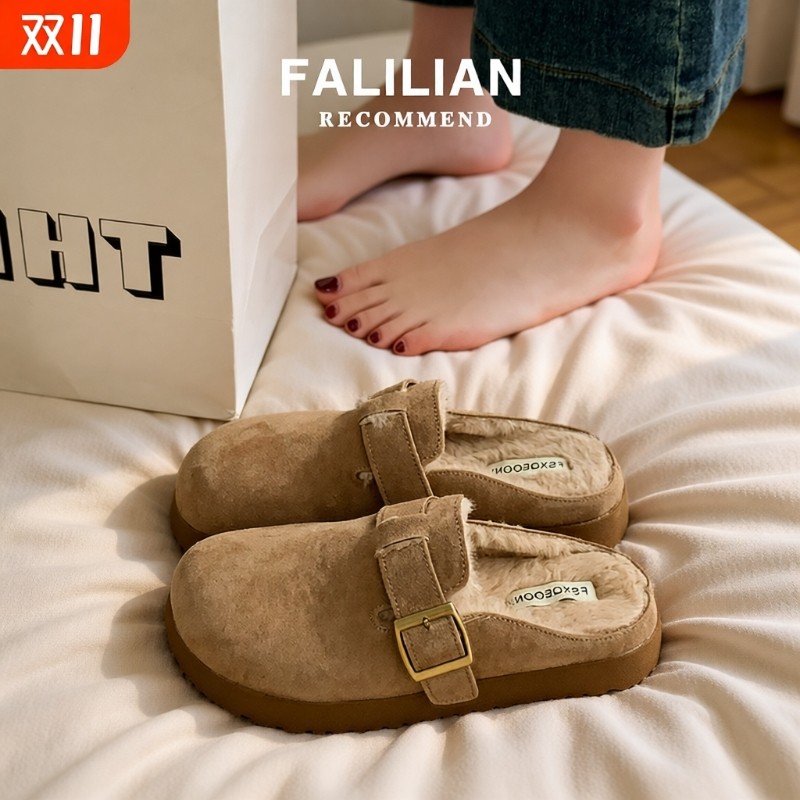 厚底毛毛勃肯鞋女半拖秋冬外穿2025新款爆款一脚蹬懒人鞋加绒棉拖