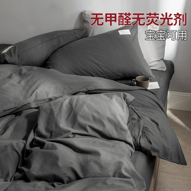 A类水洗棉双层纱四件套被罩非全棉纯棉床单人学生宿舍被套三件套