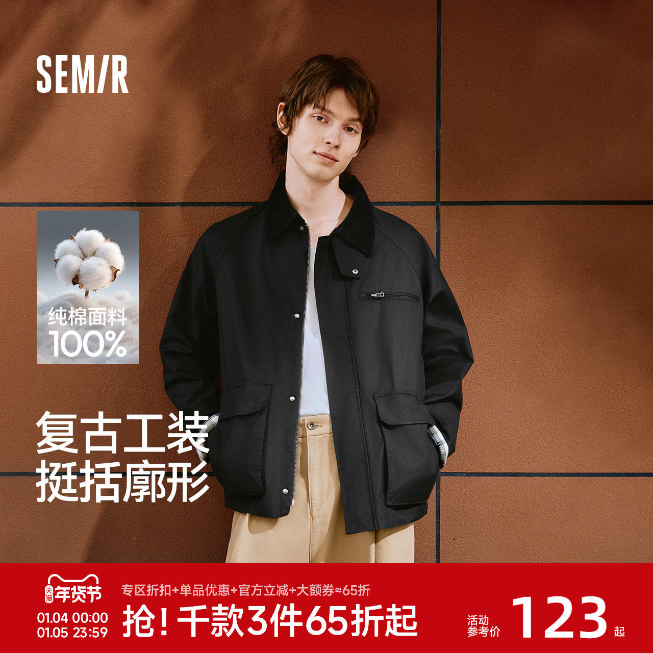 森马英伦风工装外套男2025秋季复古上衣灯芯绒翻领夹克男女同款