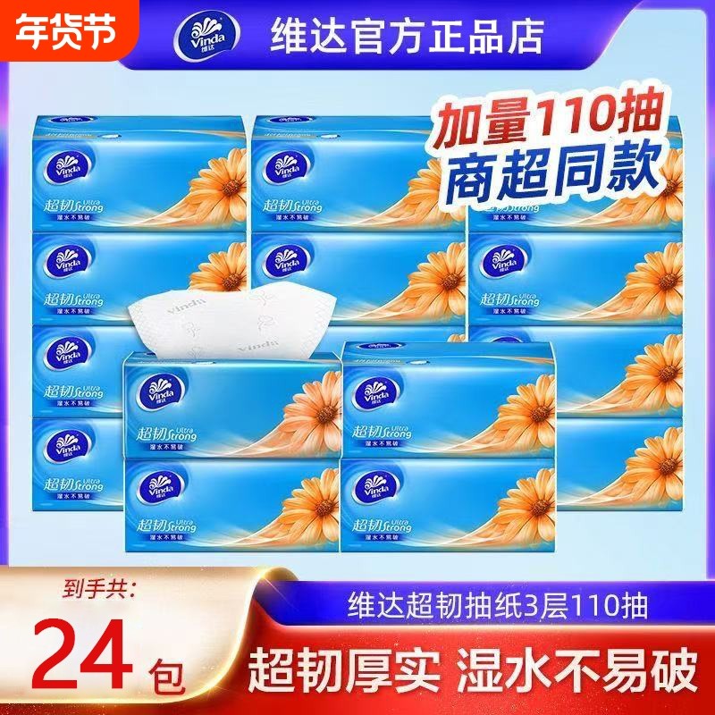 维达超韧抽纸110抽S码3层大包纸巾卫生纸家庭装餐巾纸面巾纸耐用