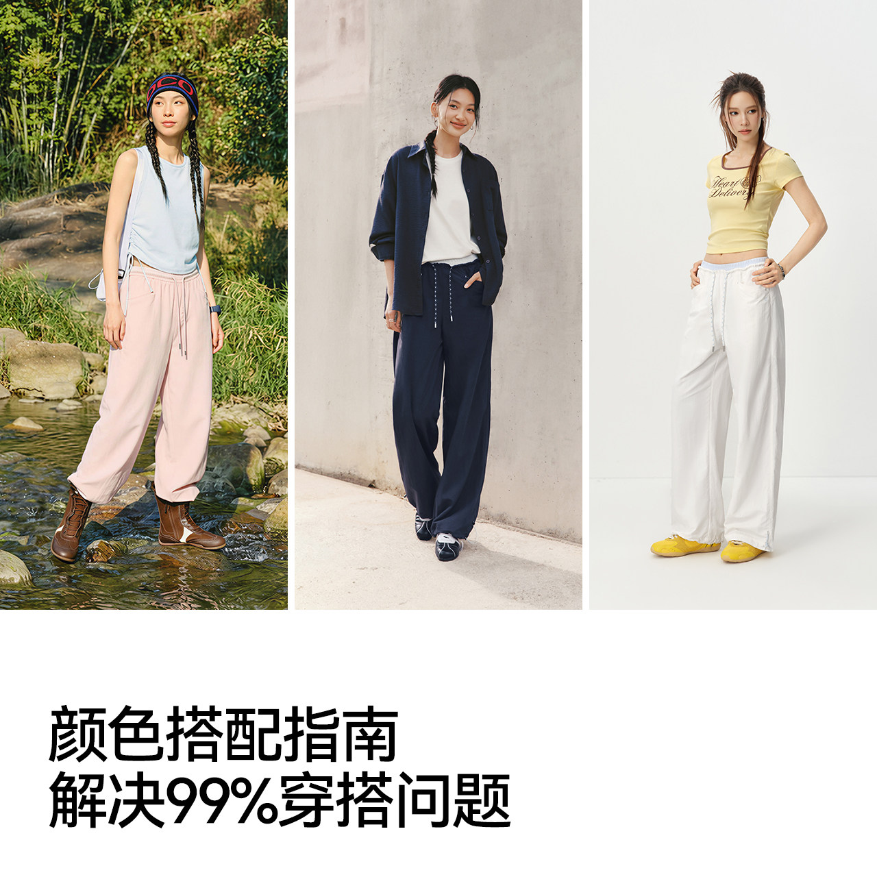 森马休闲裤女夏拼色抽绳长裤防晒吸湿速干宽松2026新款慵懒阔腿裤
