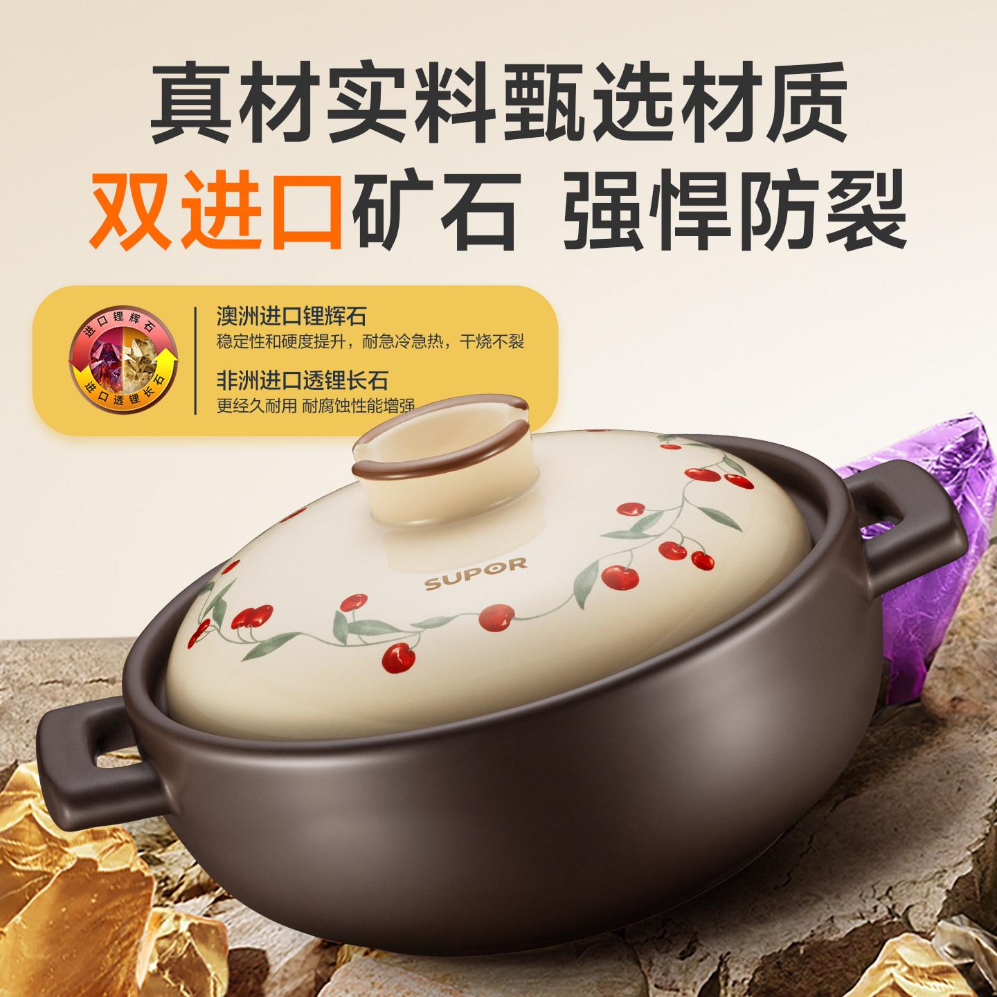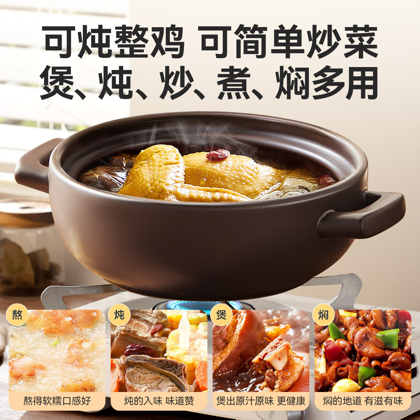 苏泊尔砂锅煲家用耐高温干烧不裂陶瓷煲汤煲仔饭燃气灶专用炖沙锅