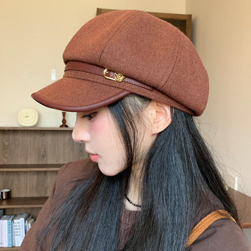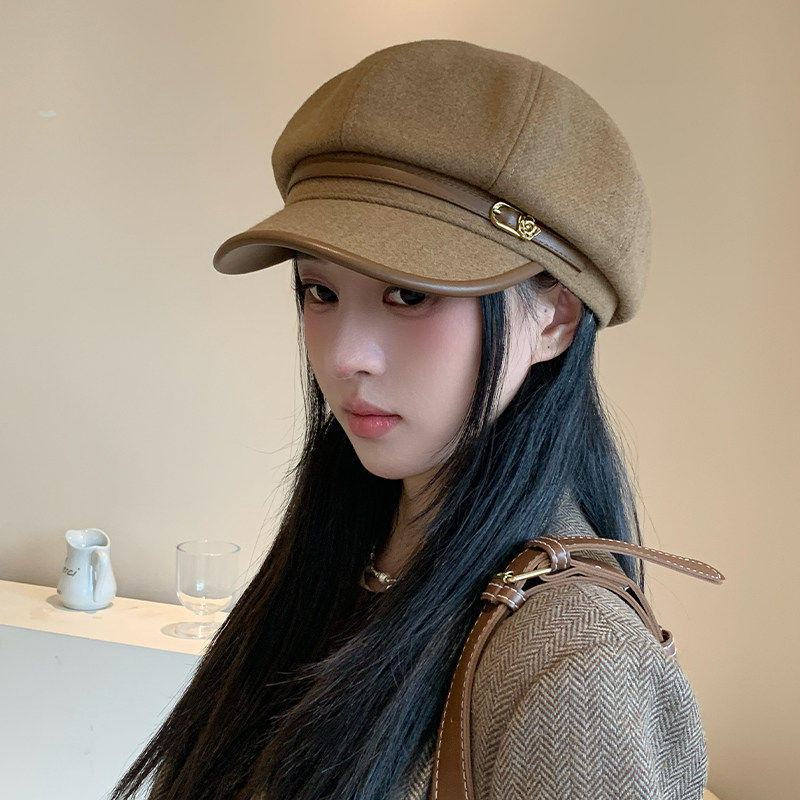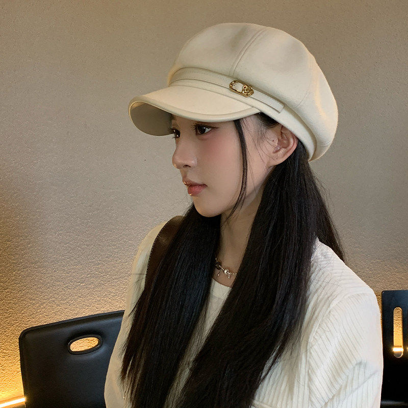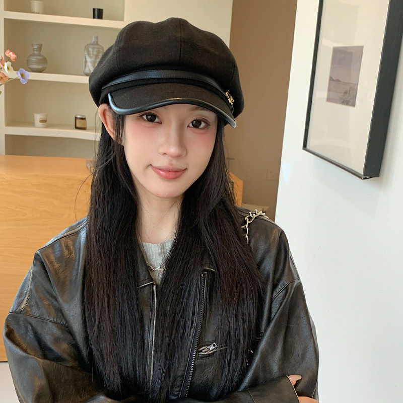 品牌百搭店新款八角帽贝雷帽显脸小日系文艺鸭舌帽画家帽黑色白色