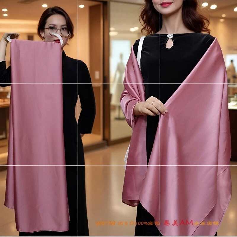 皮粉色纯色缎面长款真丝丝巾披肩女纱巾春秋冬夏季丝绸围巾超长
