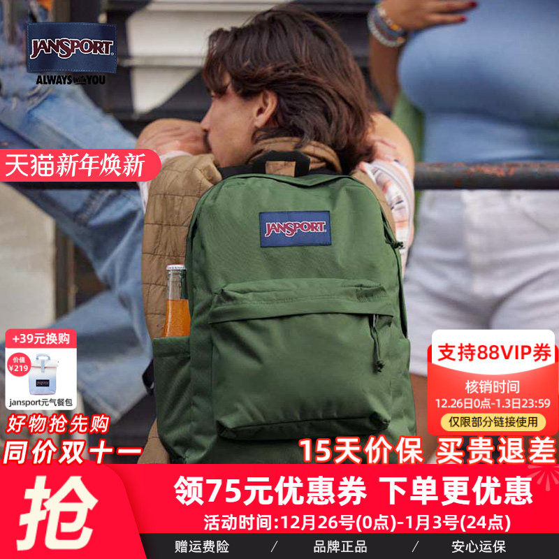 JanSport旗舰店新款工装绿/军绿大学生书包电脑背包旅游双肩包
