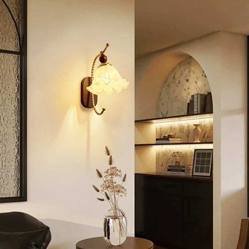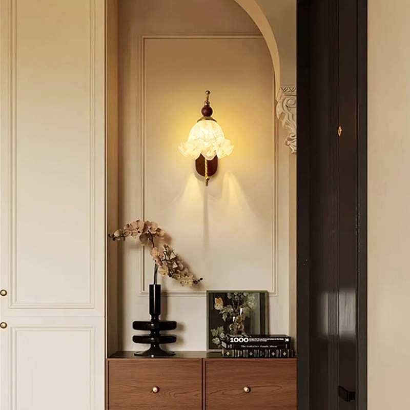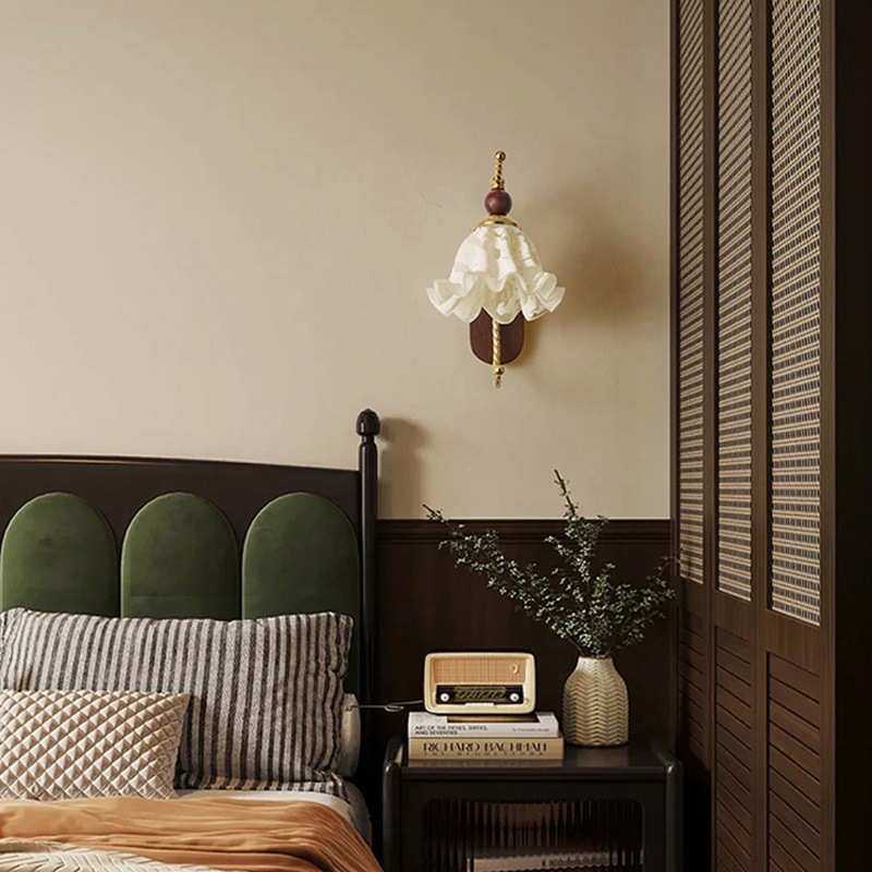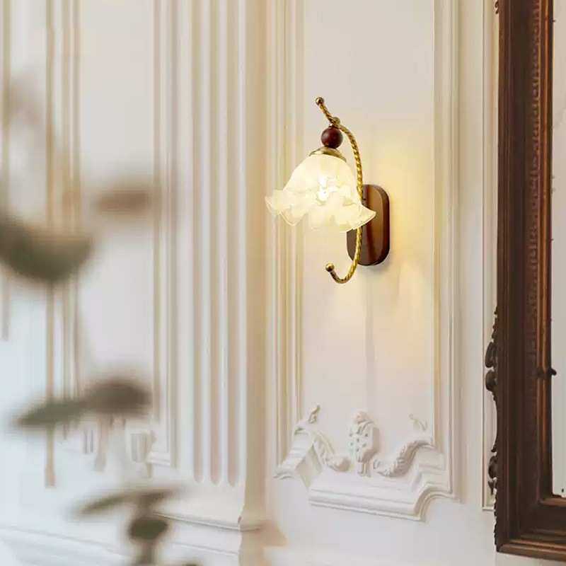 护眼灯床头卧室道法式复古玻璃过温馨胡桃木色古风中客厅壁灯走廊