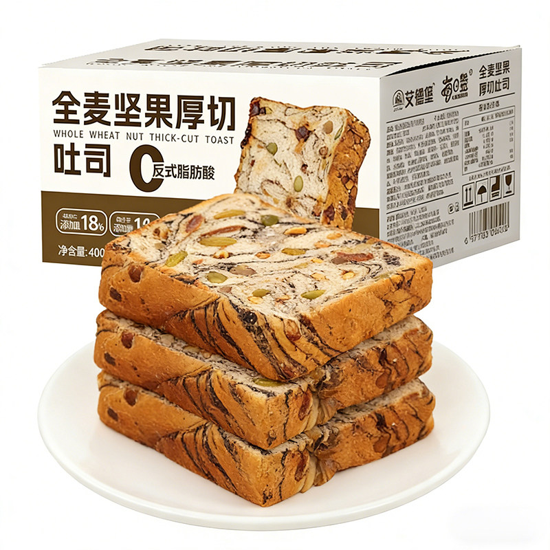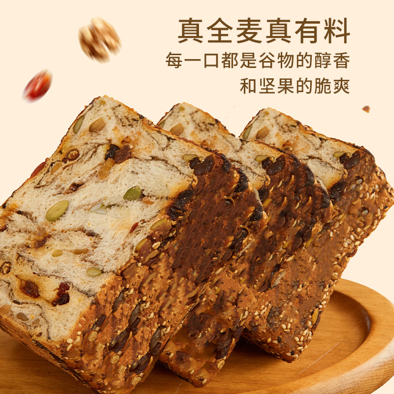 全麦坚果厚切千层爆料吐司无蔗糖整箱面包切片早餐解馋零食饱腹