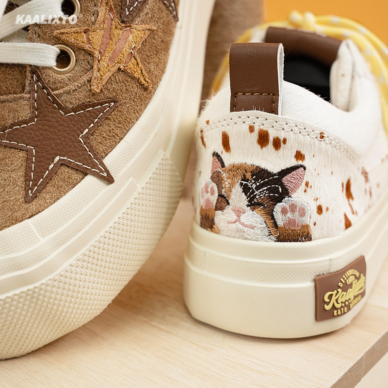 Kaalixto动物系列猫猫款星星鞋帆布鞋厚底增高轻巧帆布鞋透气百搭