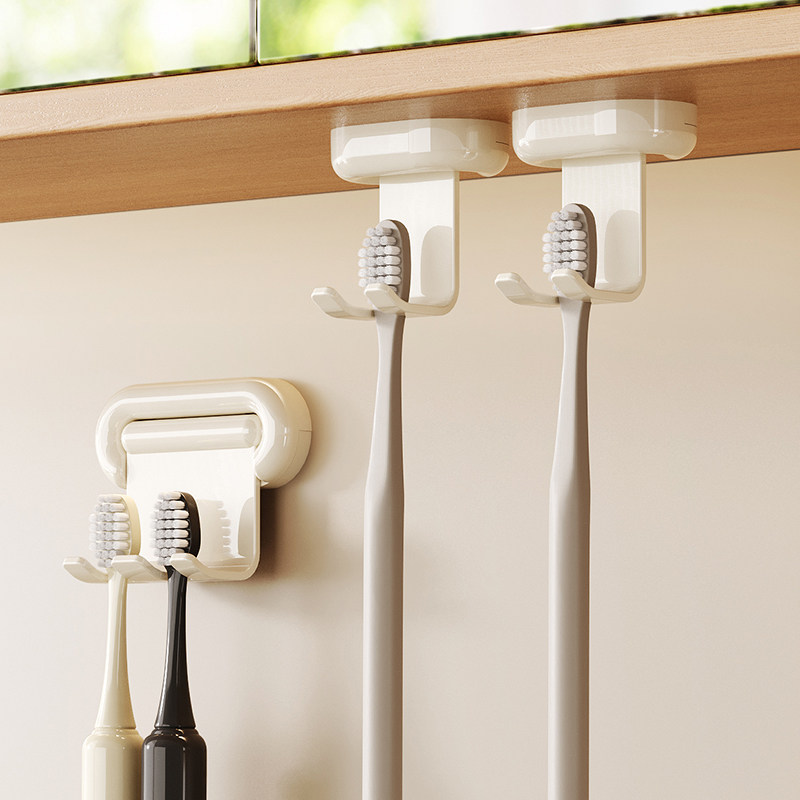 镜柜下牙刷置物架壁挂式免打孔电动牙刷牙具收纳架磁吸漱口杯挂架