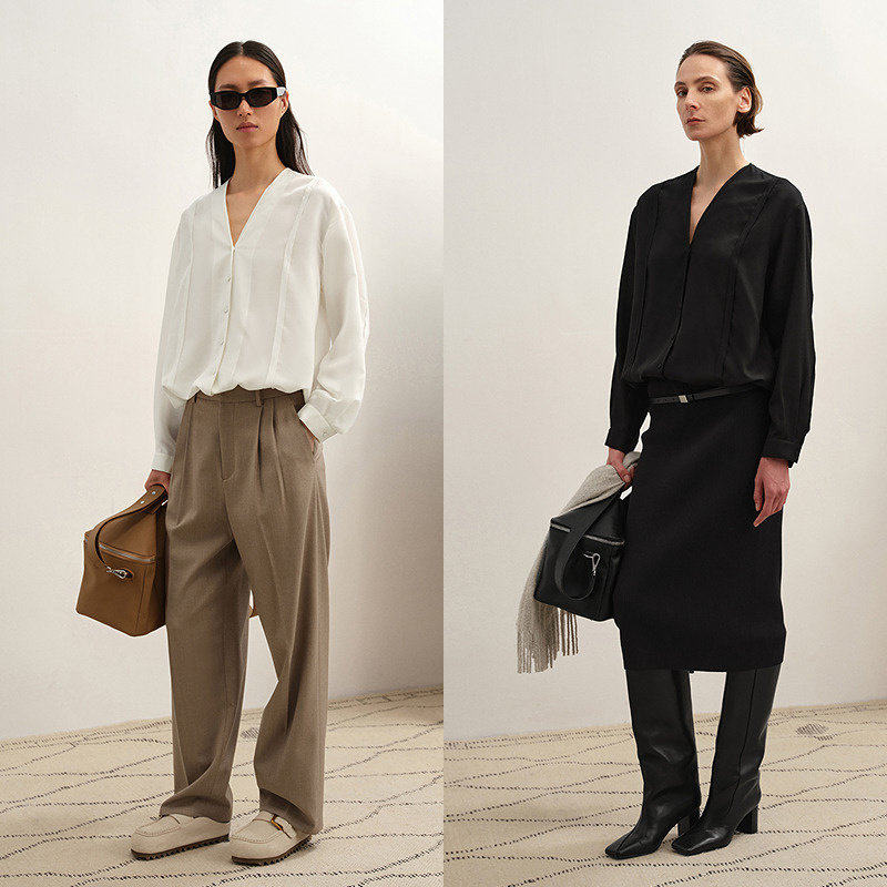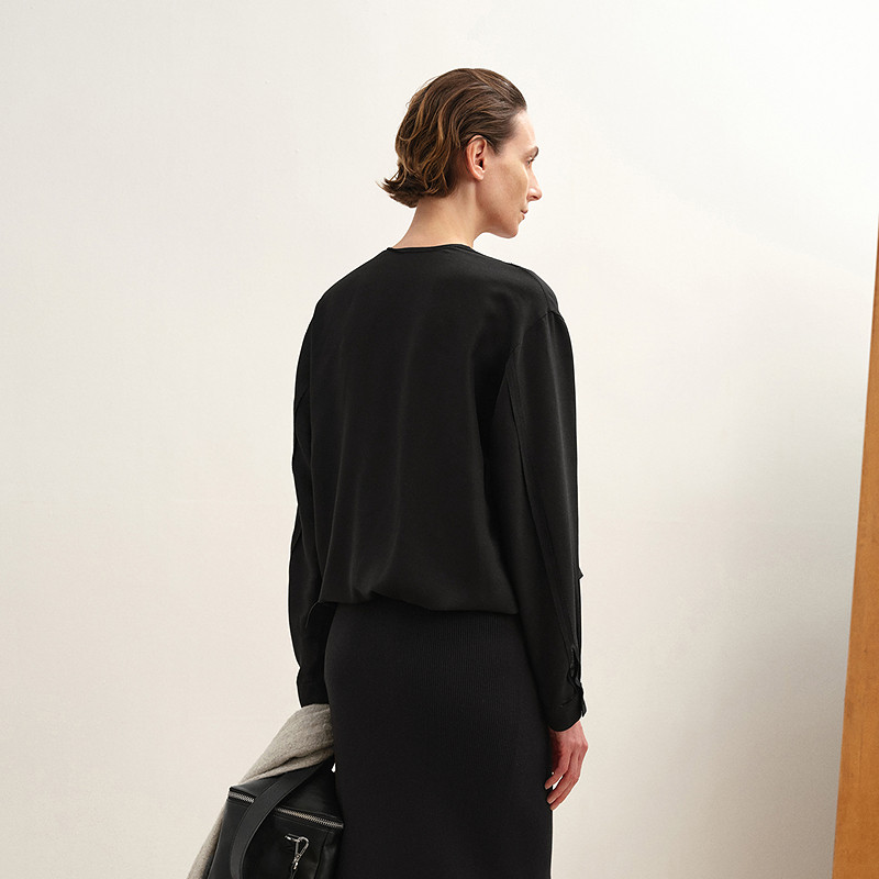 【商场同款】LESS2025冬新款简约气质V领含桑蚕丝衬衫女2PA218190