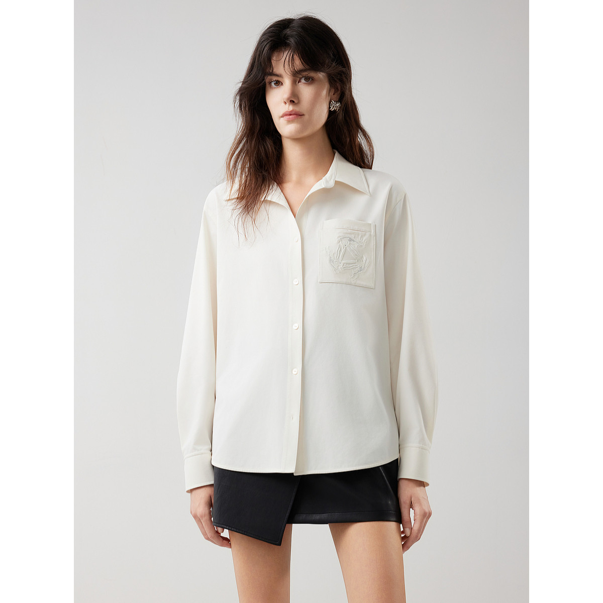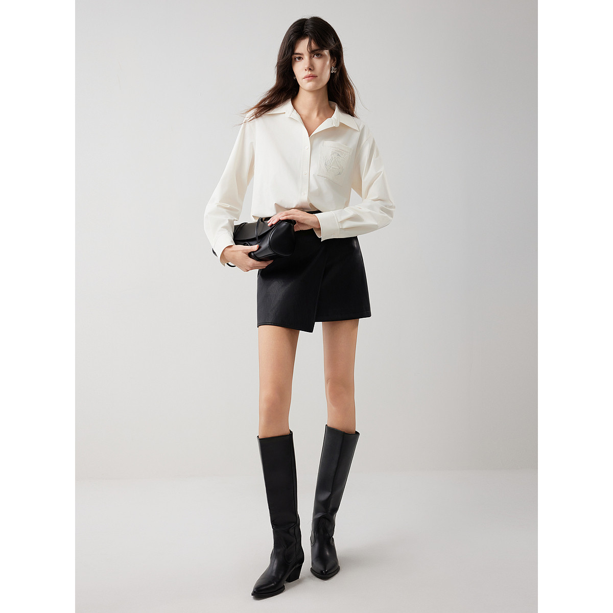 ELLE法式翻领设计感衬衫女2025冬季新款高级感独特气质休闲衬衣