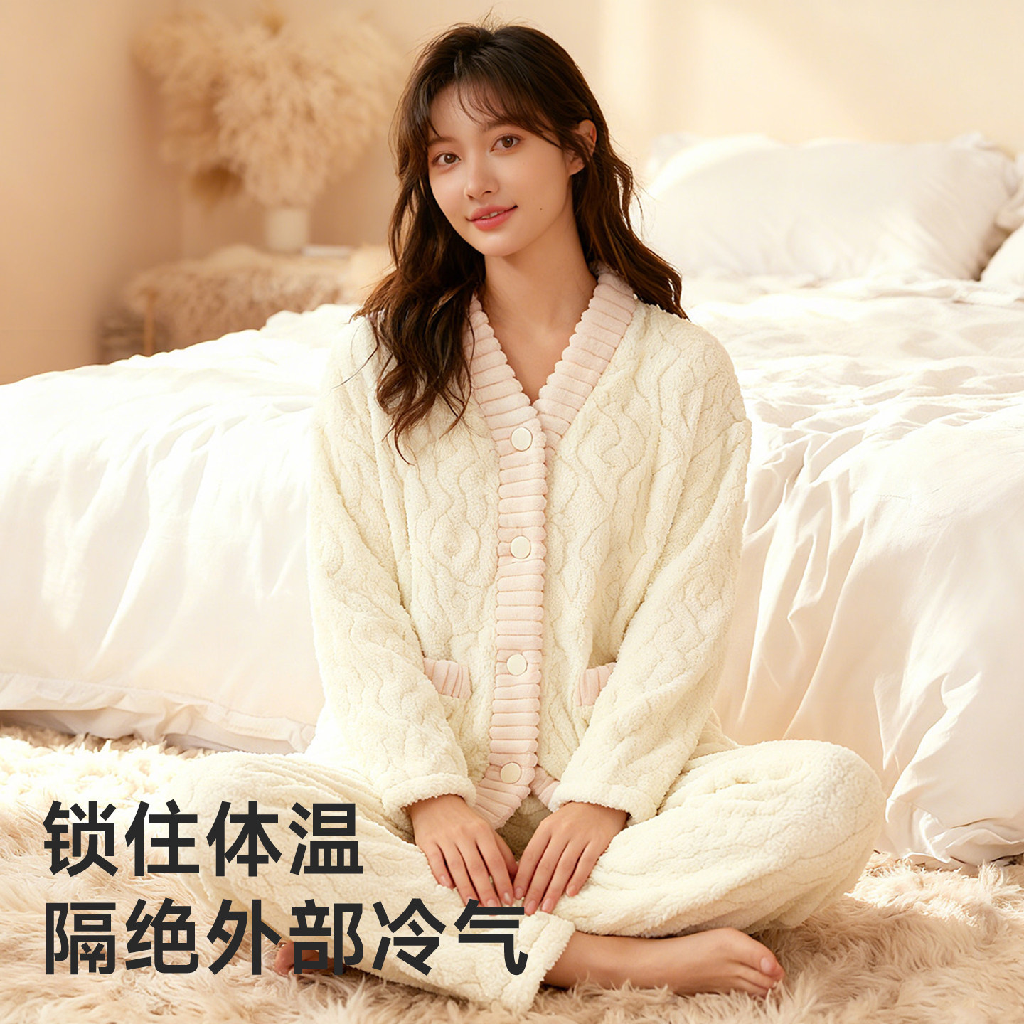 2025年冬款珊瑚绒睡衣女秋冬季加厚法兰绒加绒套装家居服春秋新款