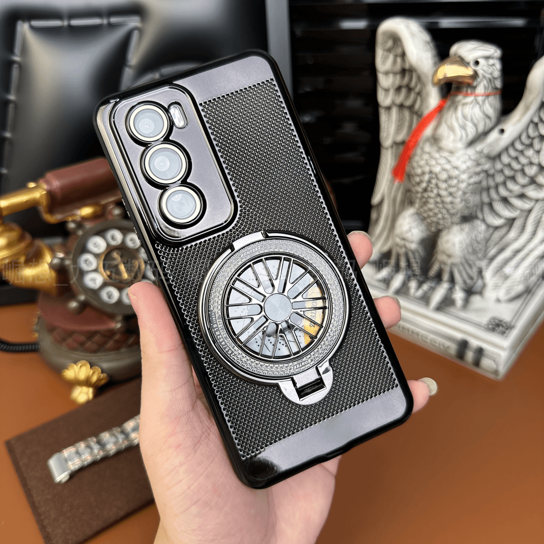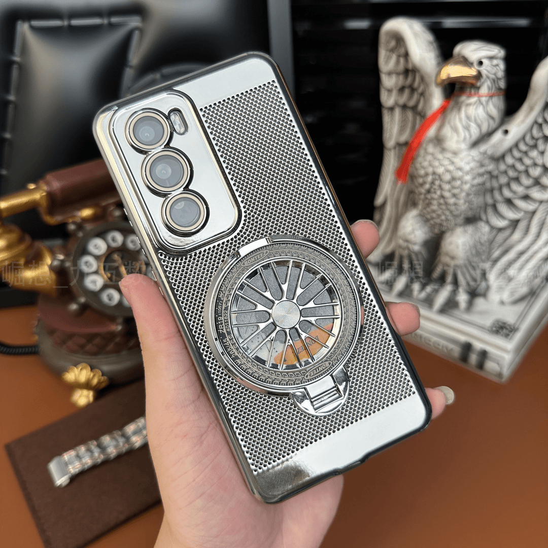 解压陀螺支架适用opporeno12手机壳Reno13/14Pro电镀网格自带镜头膜散热壳Reno10Pro+新款男适合夏天的保护套