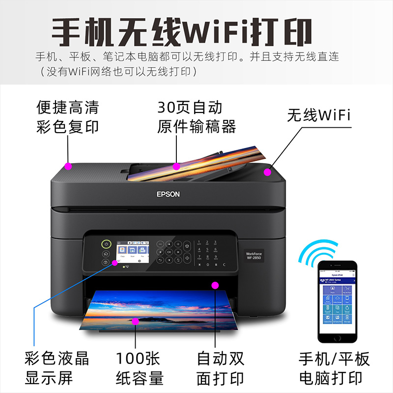 爱普生2950照片彩色喷墨打印机办公专复印传真一体机家用小型学生