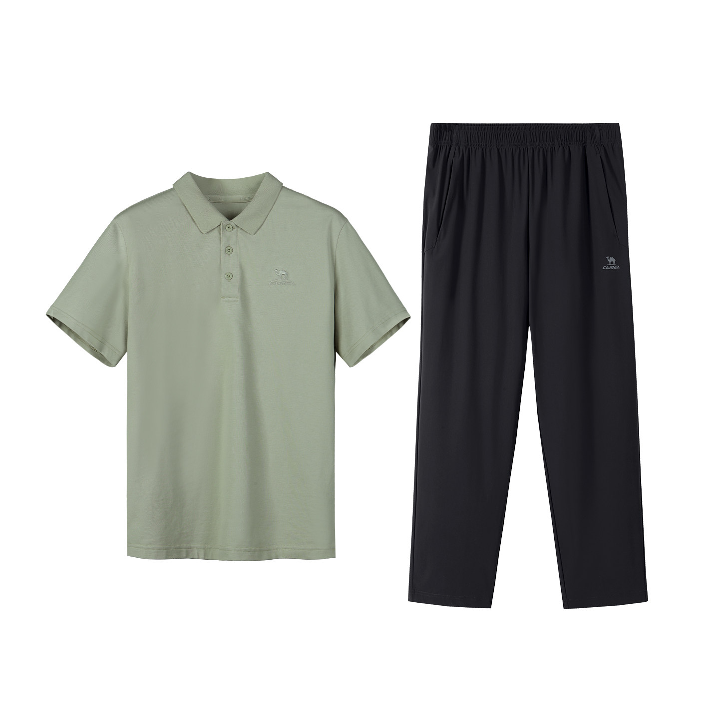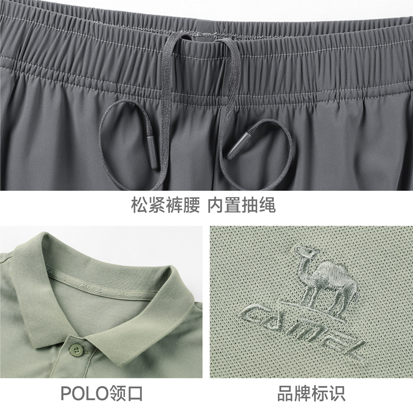骆驼男装POLO衫套装爸爸男士新款短袖速干裤子女两件套运动吸汗夏