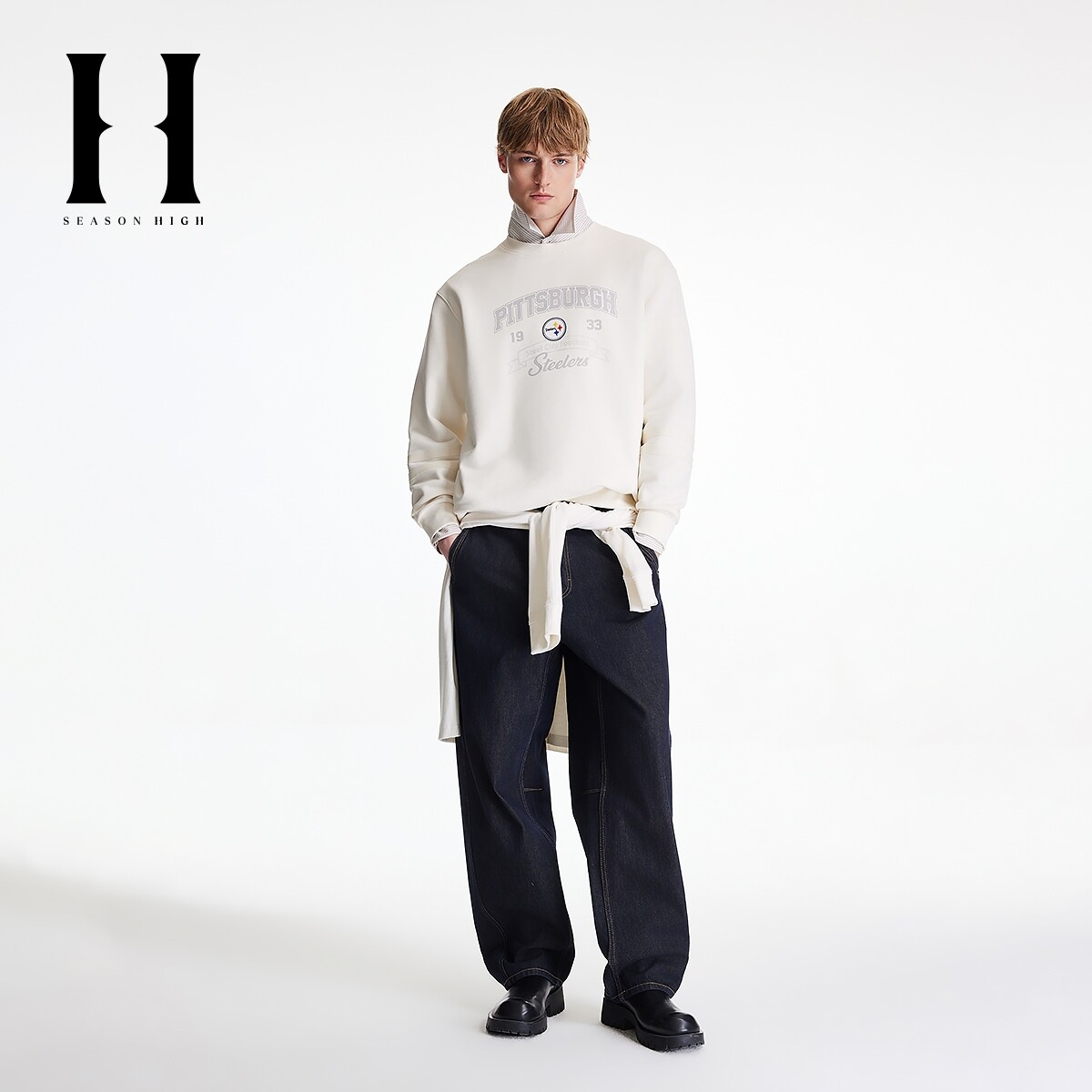 SEASON HIGH春季男装上衣卫衣略宽松罗纹匹兹堡钢人队刺绣潮圆领