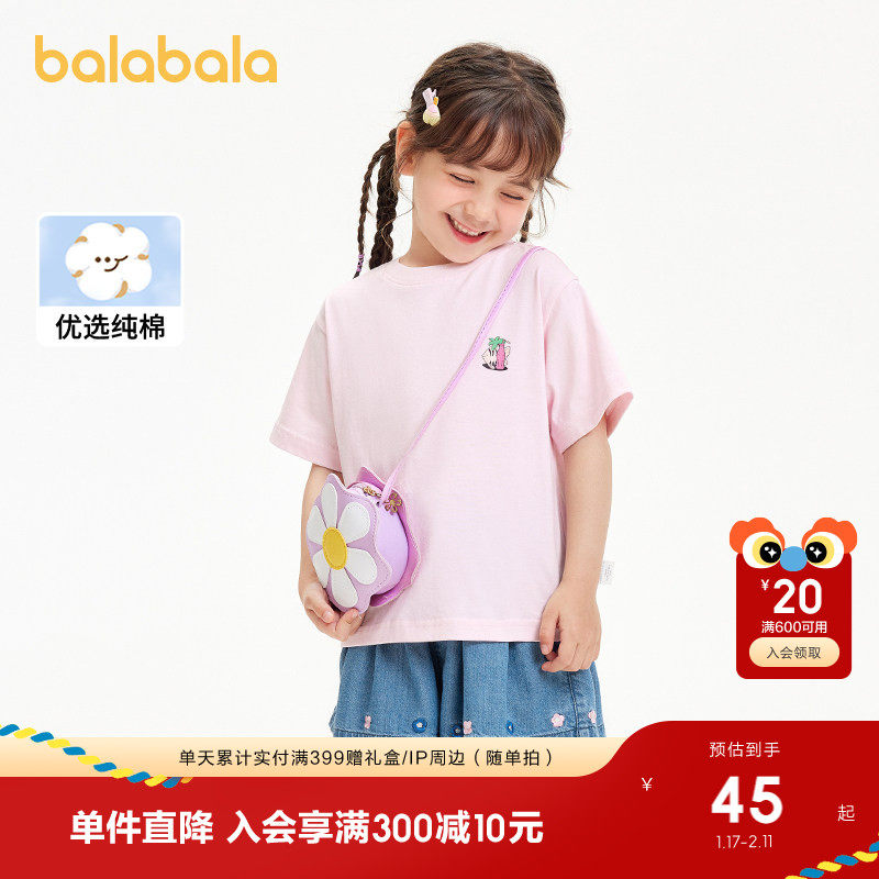 巴拉巴拉童装男童短袖t恤女童上衣宝宝2025新款夏装儿童全棉衣服