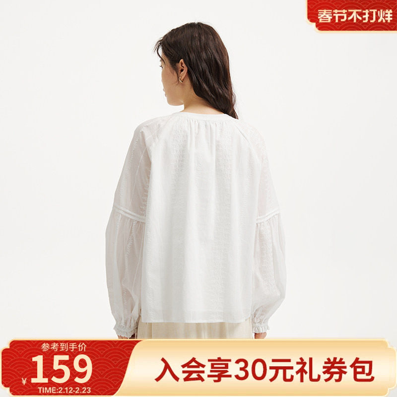 热风2026春新款波西米亚风纯棉衬衫女100%棉透气宽松度假通勤上衣