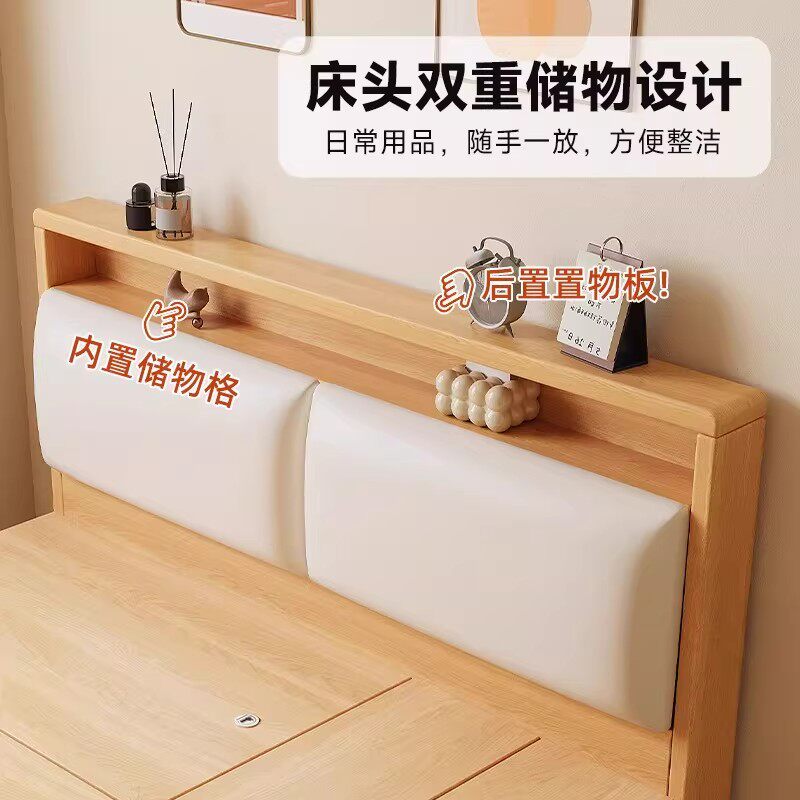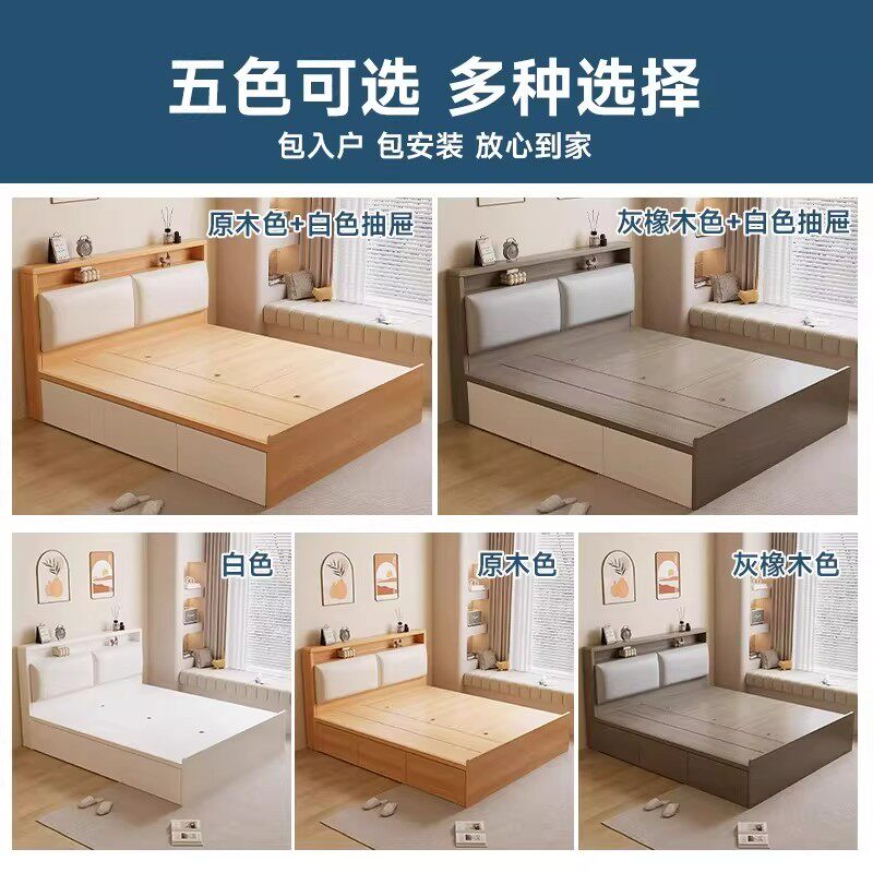 现代简约实木床1.8米主卧双人床1.5M单人经济型高箱储物大床