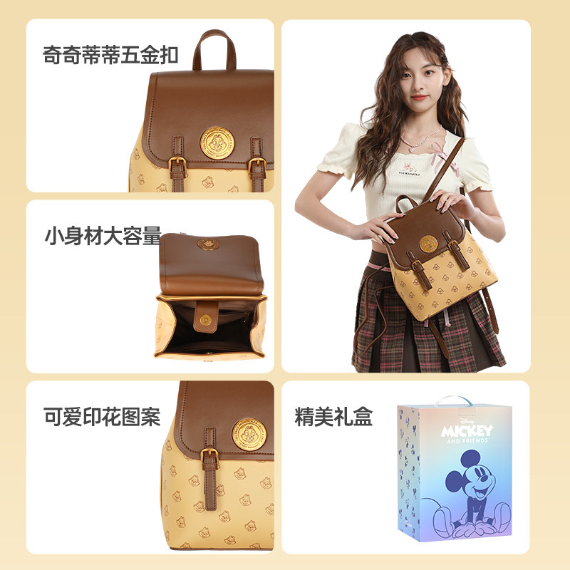 麦斯卡×迪士尼正品双肩包女2026新款简约撞色百搭背包大学生书包
