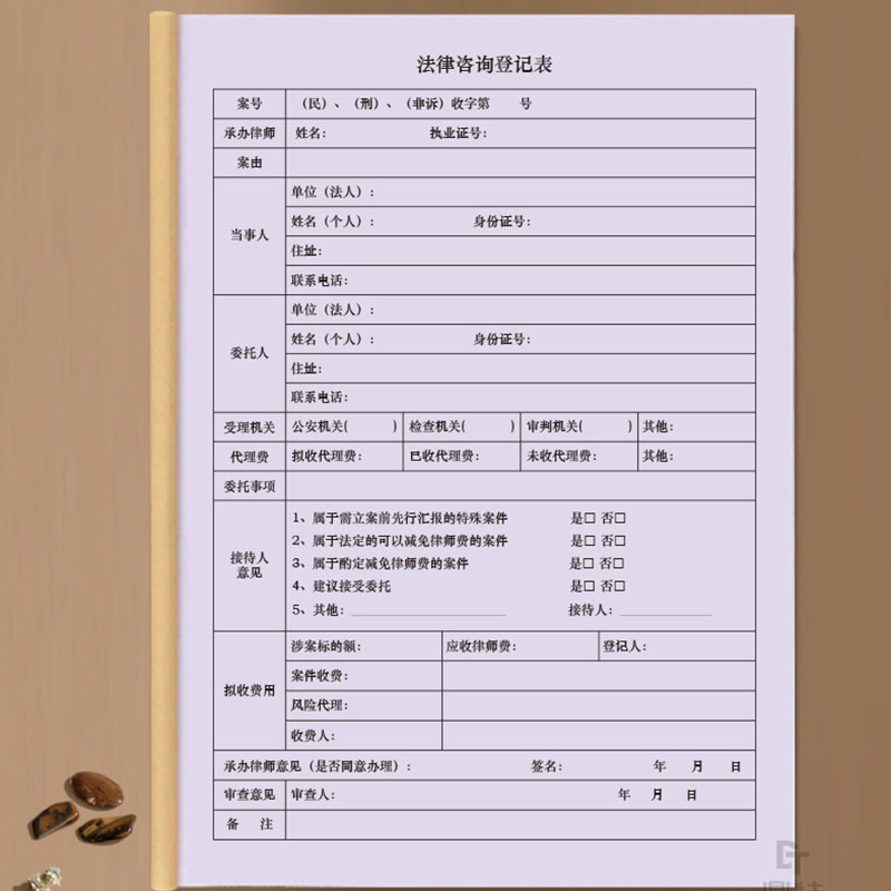 律师事务所法律咨询登记本律师事务所收案登记表案卷档案记录簿接待登记表民事刑事案件收案登记簿业务客户信