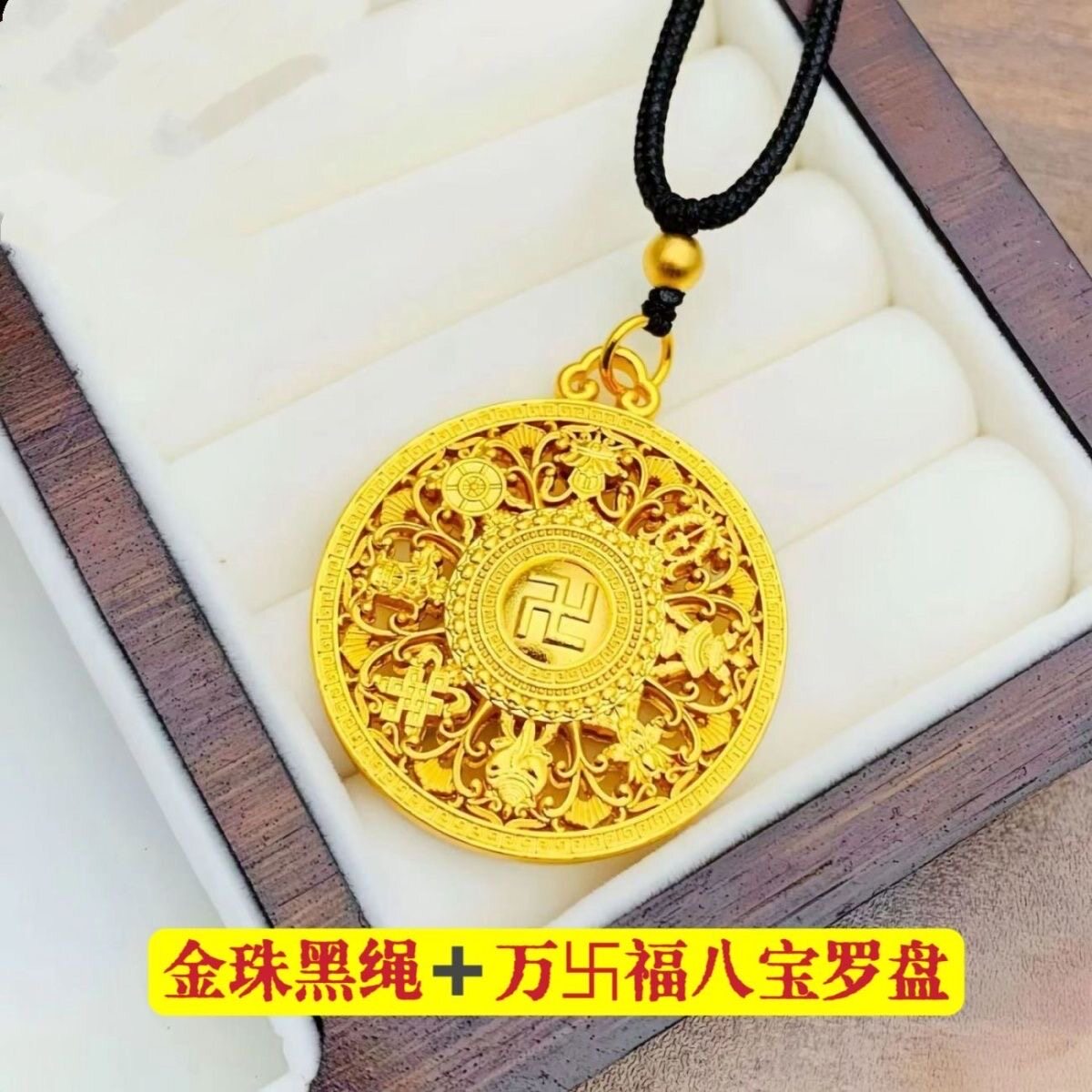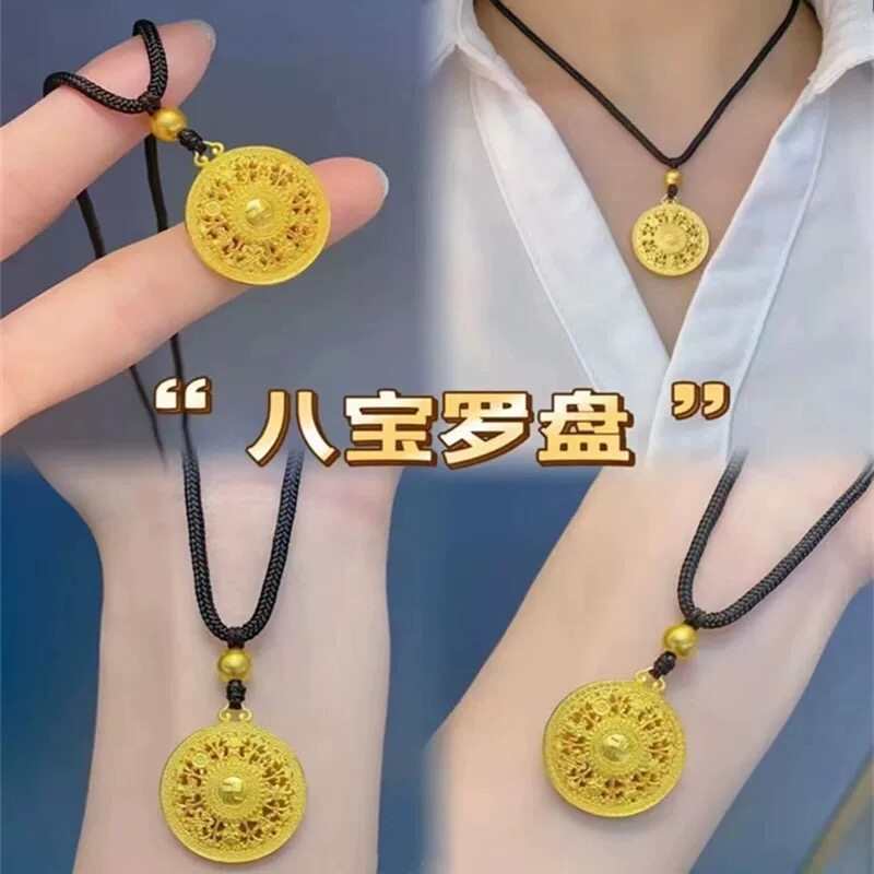 转好运八宝罗盘吊坠时来运转金色项链古法沙金毛衣链送女友闺蜜礼