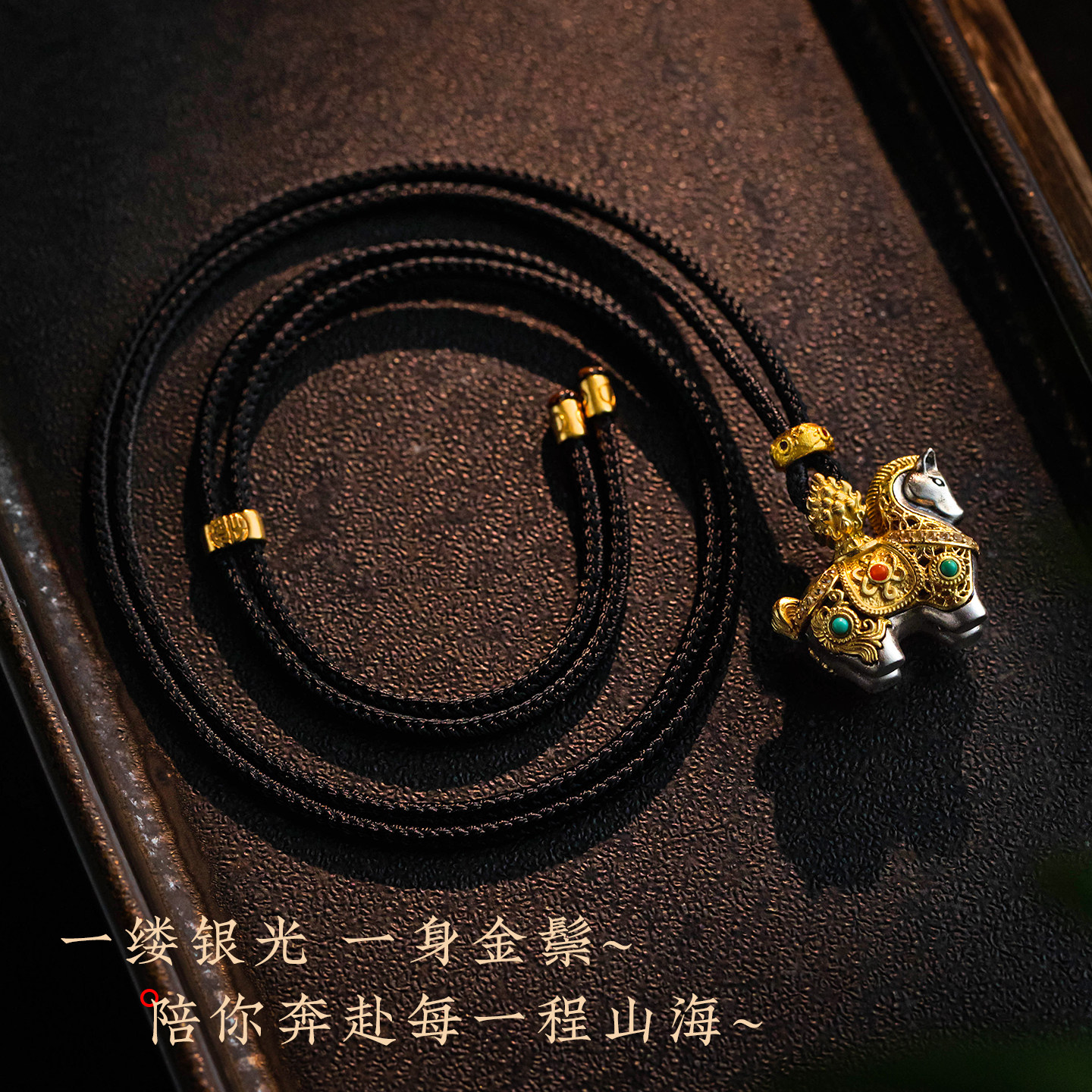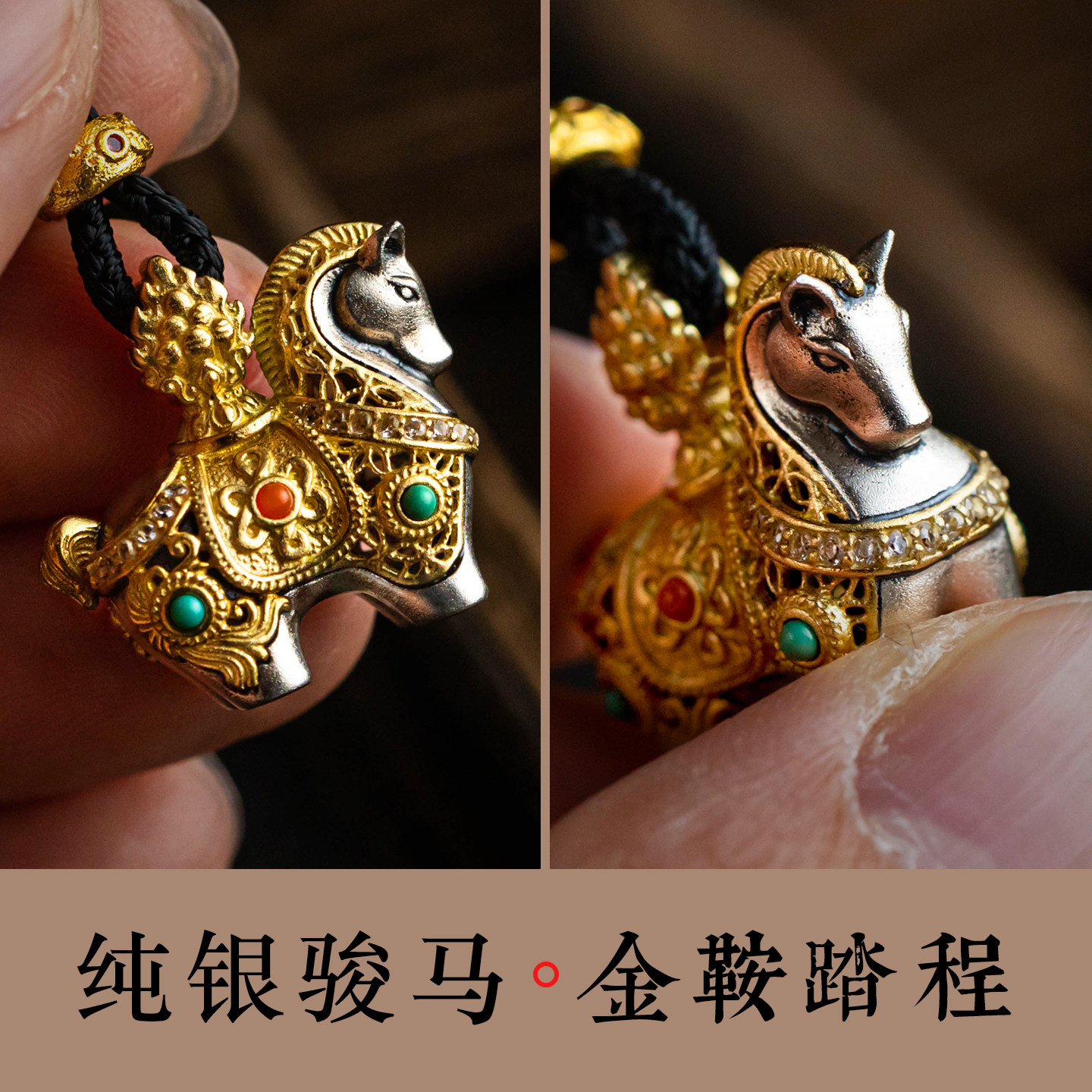 大善堂马上有钱纯银吊坠生肖马男女款本命马年毛衣链精致招财礼物