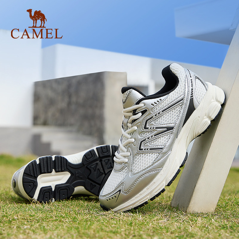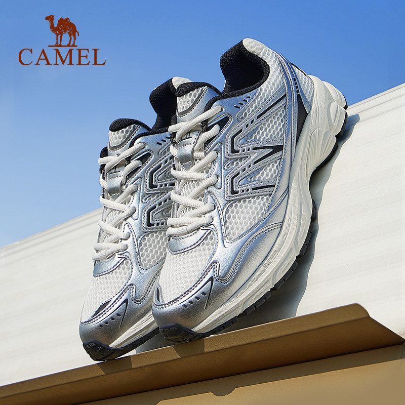 骆驼追寻运动鞋新款网面透气软底减震慢跑鞋银灰色复古休闲鞋男女