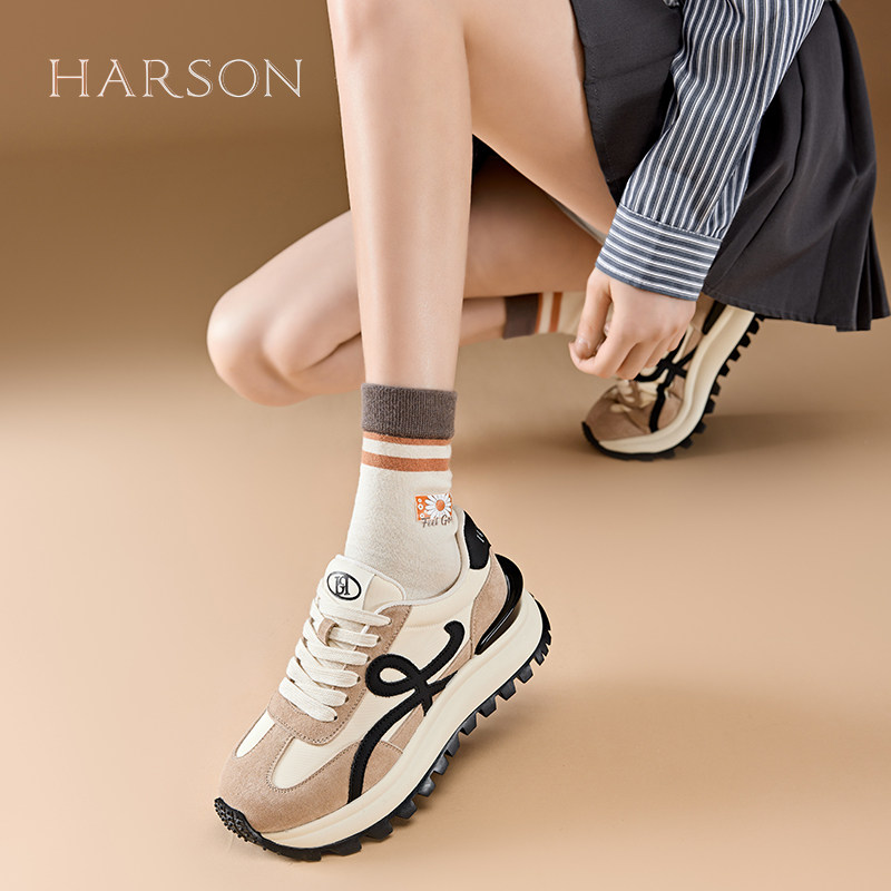 哈森厚底德训鞋夏季鞋子女2025新款爆款小个子运动休闲想增高女鞋