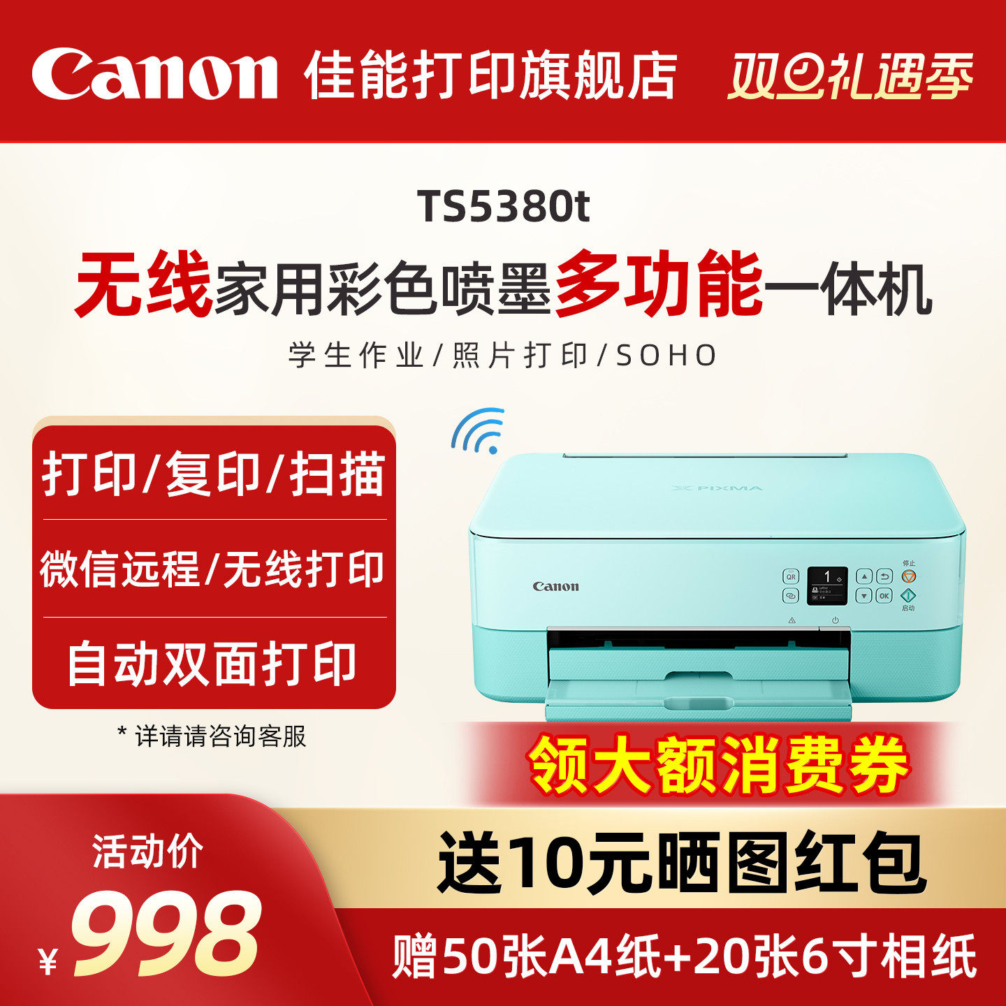 佳能旗舰店TS5380t彩色A4喷墨多功能打印复印扫描一体机学生家用小型无线WiFi微信远程自动双面