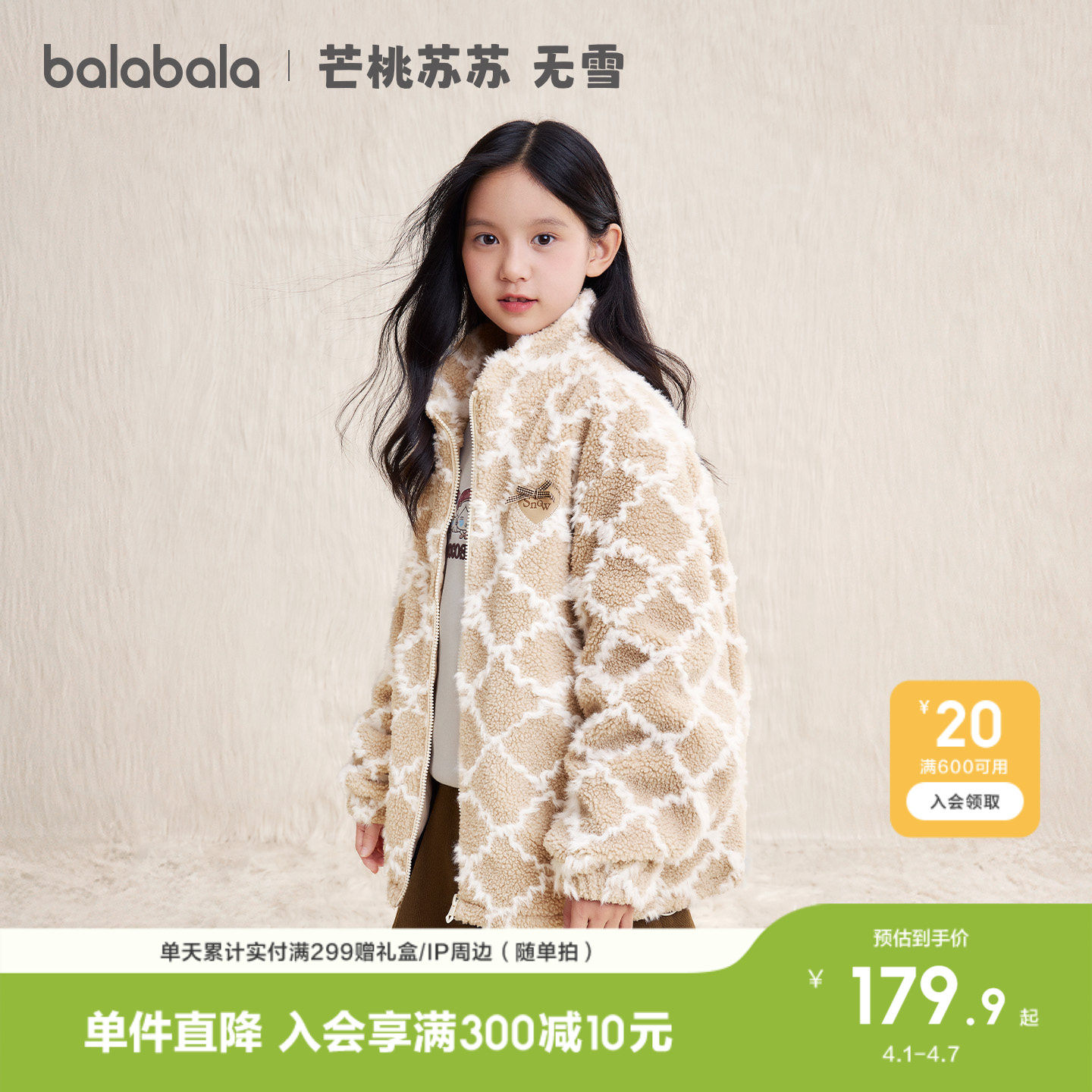 【无雪棉花娃娃IP】巴拉巴拉童装儿童棉衣女童外套秋冬季棉服保暖